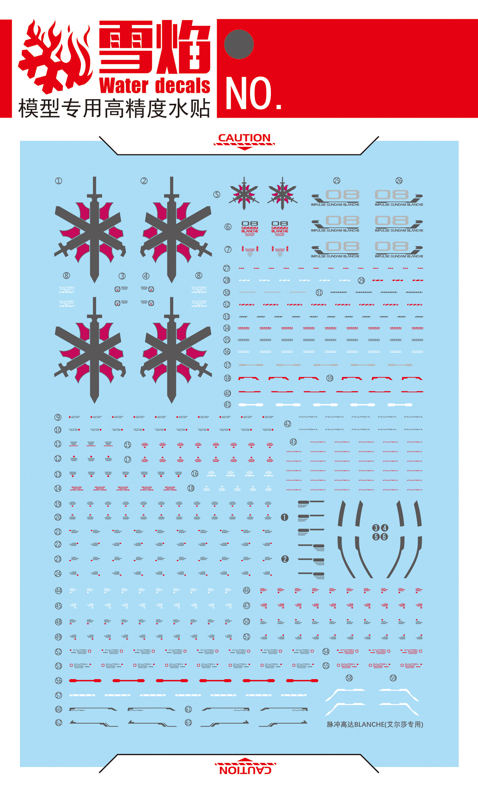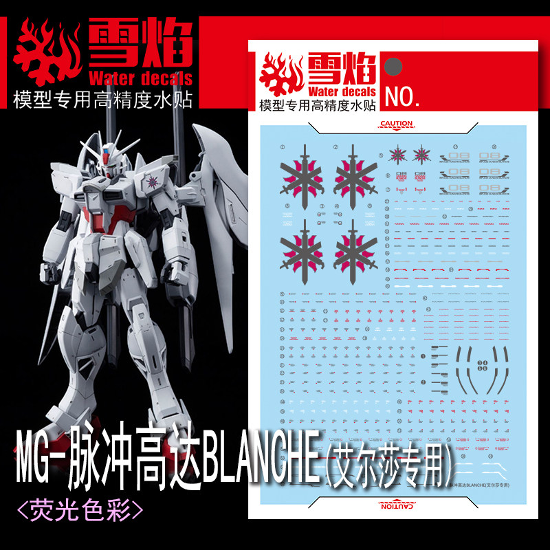 📚 包邮 雪焰 MG 1/100 白色命运脉冲高达 BLANCHE 艾尔莎 荧光 水贴