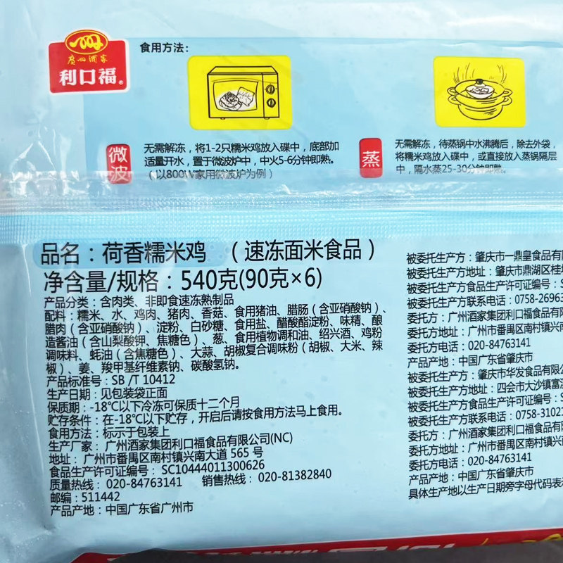 📚 广州酒家利口福荷香糯米鸡540g荷叶广式早茶点心方便速食懒人早餐