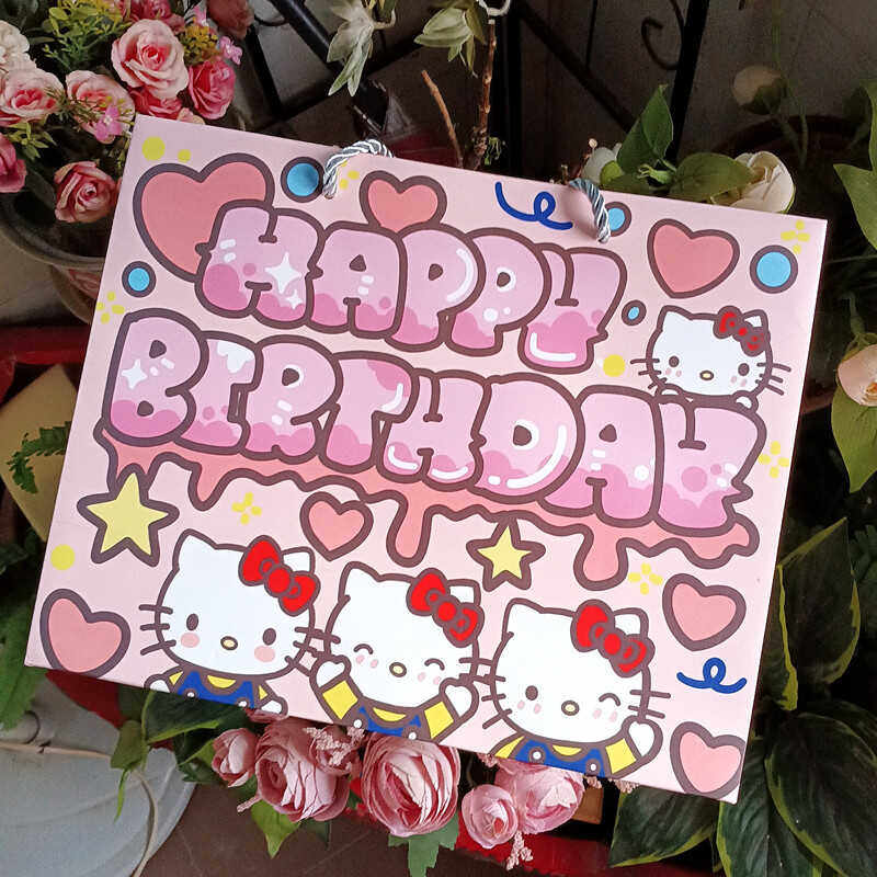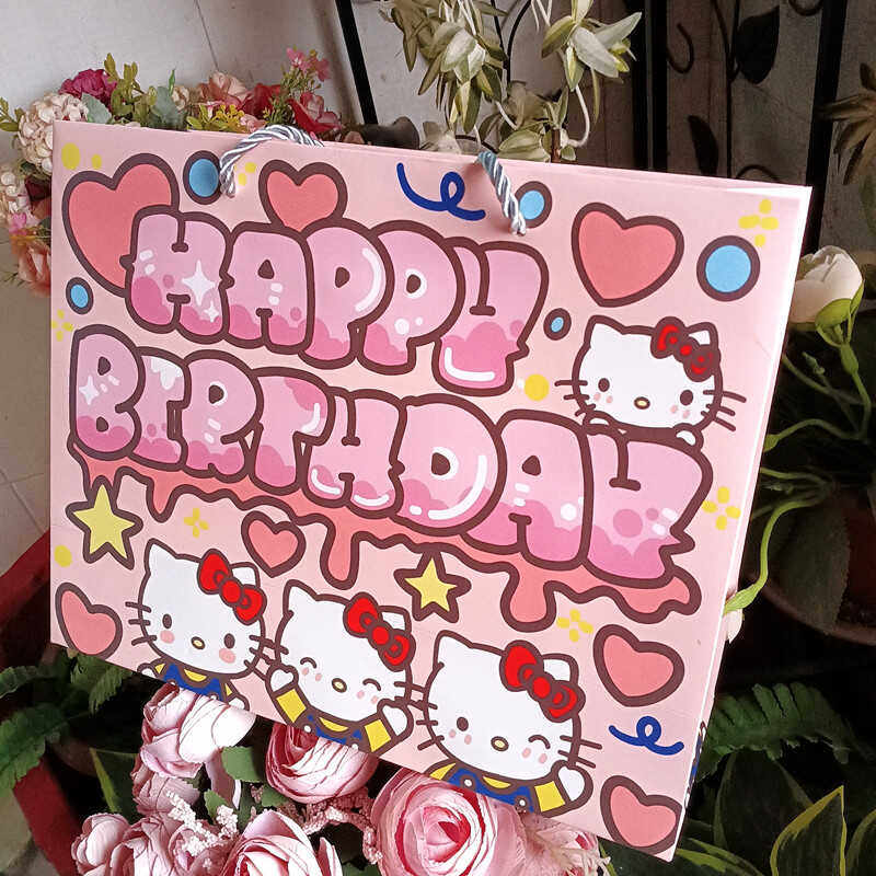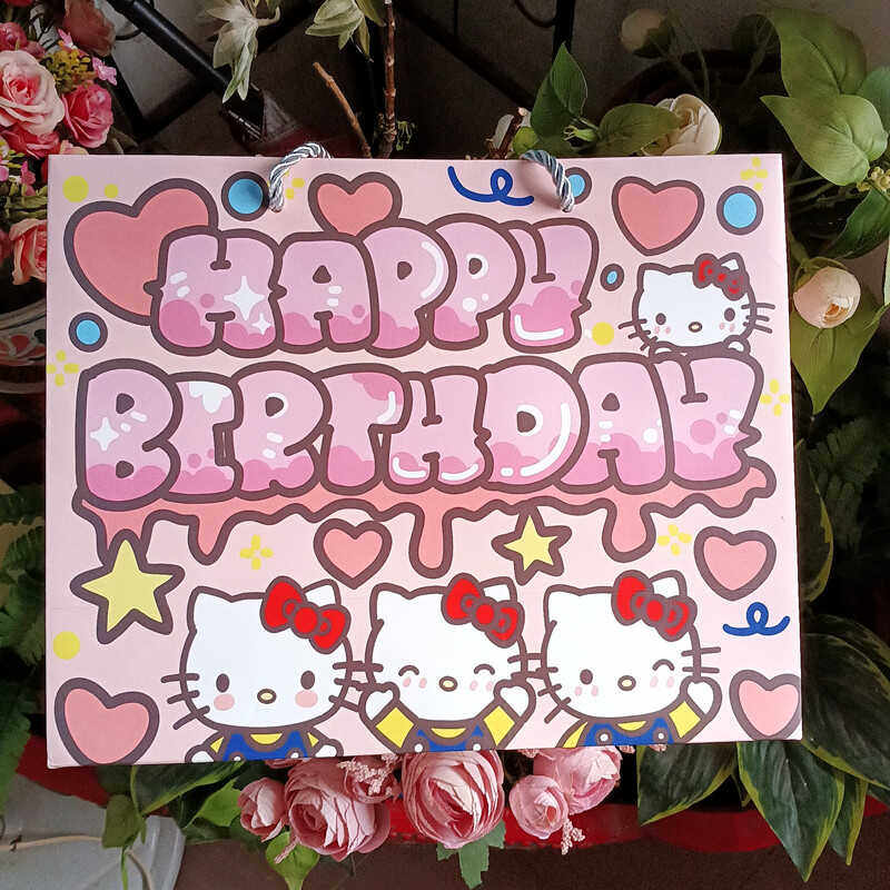 📚 粉色可爱猫咪生日快乐礼品袋送朋友礼物包装手提购物袋加大少女心