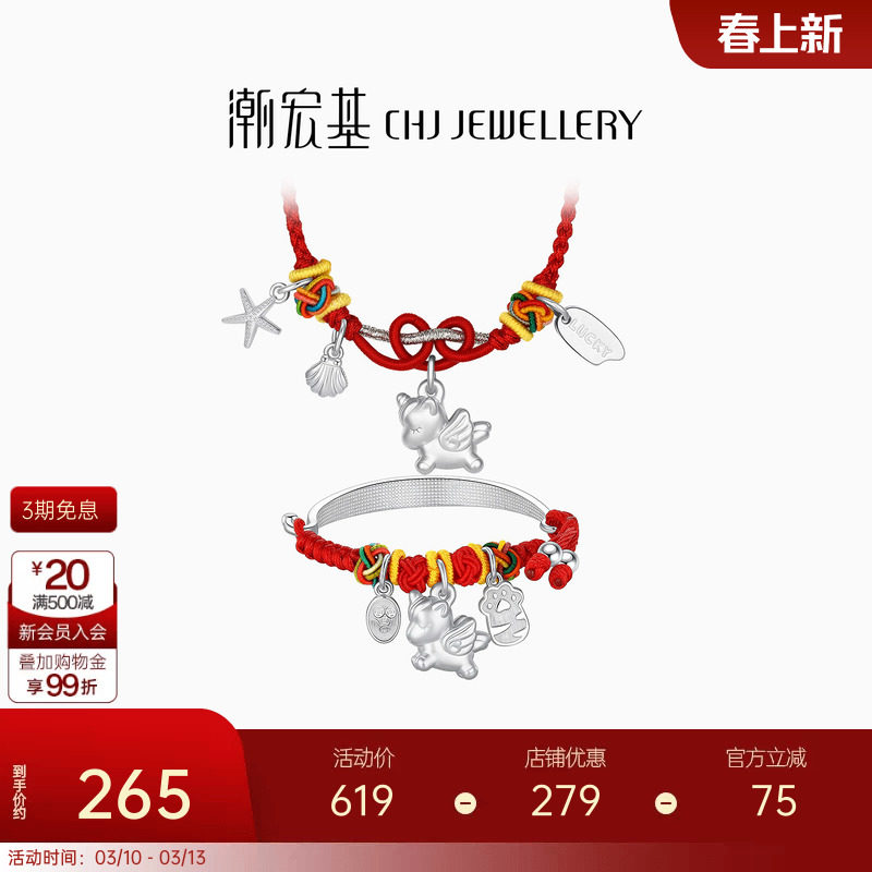 📚 潮宏基独角兽足银项链项圈银饰手镯童镯本命年新生周岁礼物儿童