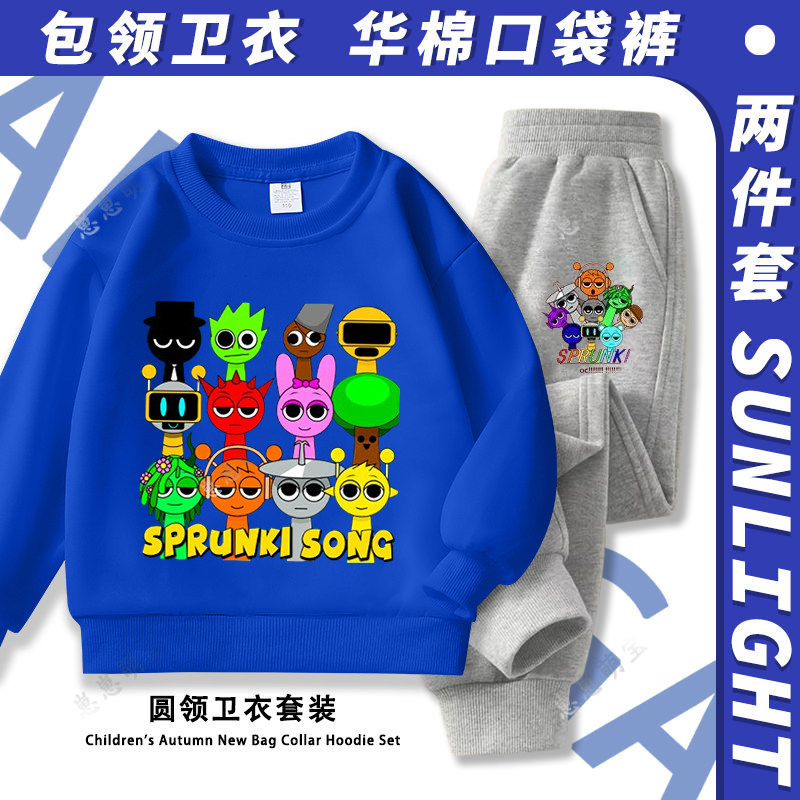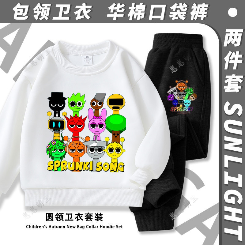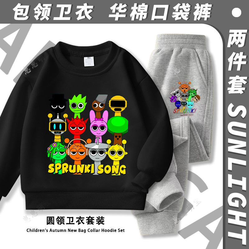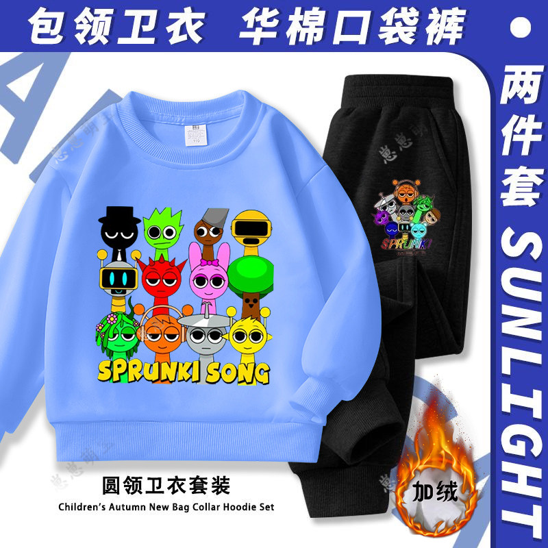 📚 sprunki节奏音乐盒子加绒卫衣儿童圆领卫衣卫裤两件套装秋冬衣服