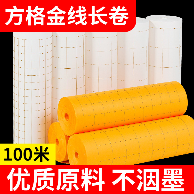📚 加厚描金方格小楷长卷纸半生熟带格子千字文楷书篆隶初学者临帖练习作品创作专用带格描金书画手卷纸100m