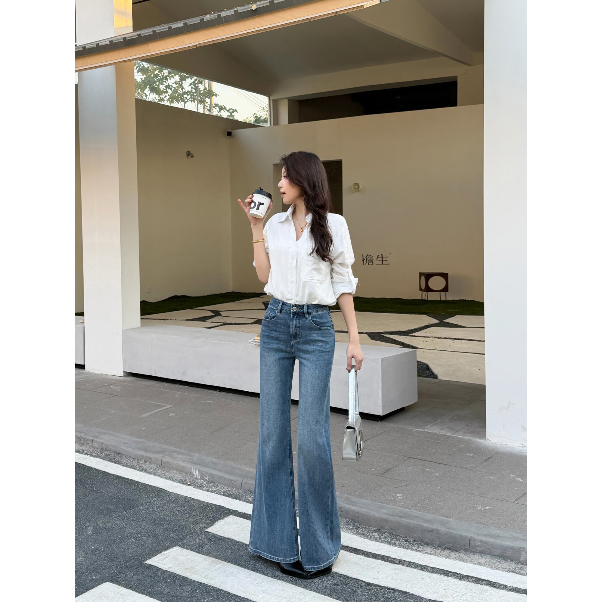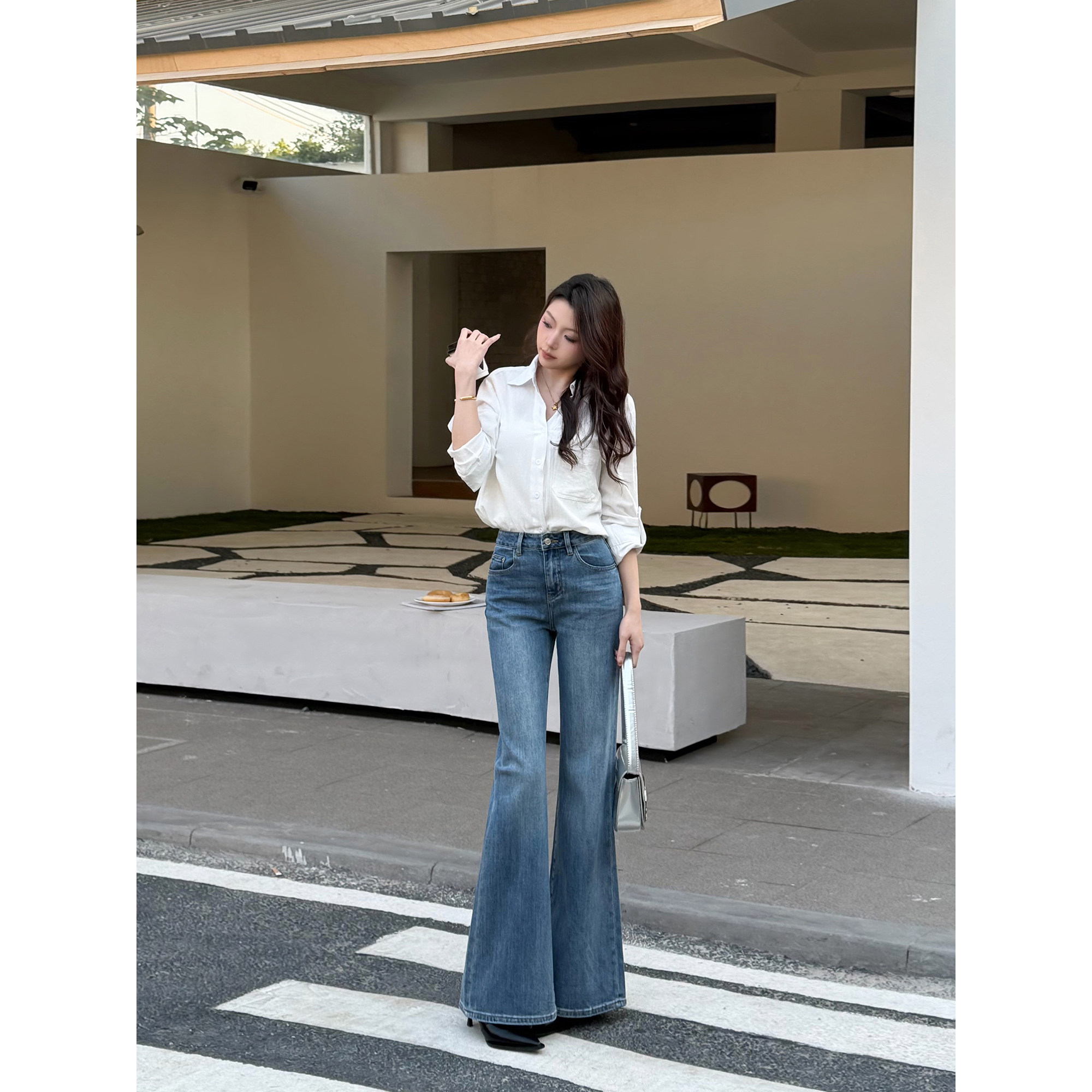 📚 王家有鱼2026年早春新款复古蓝不贴腿微喇裤中高腰显瘦牛仔裤女款