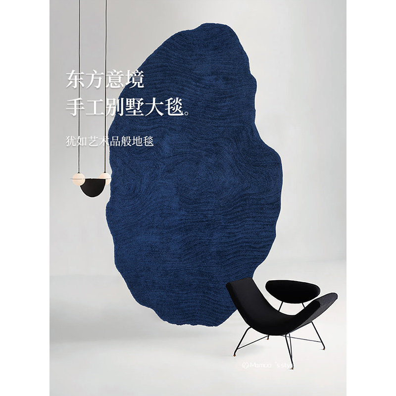 📚 芒夏|琉璃蓝复古高品质手工异形地毯客厅中式卧室中古风别墅大宅