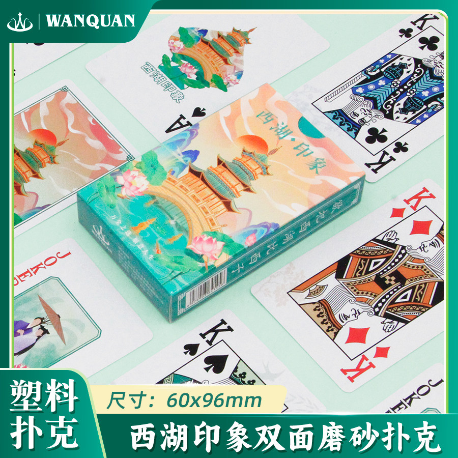 📚 万全塑料扑克牌PVC防水防滑磨砂西湖印象酒店棋牌室加厚掼蛋扑克