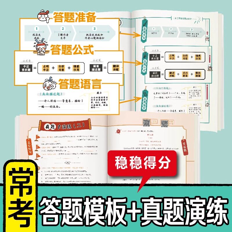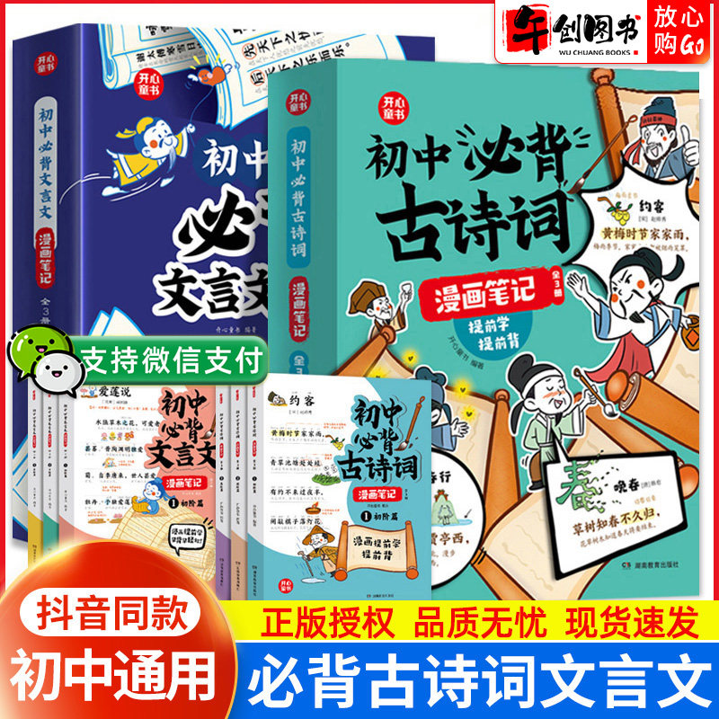 📚 抖音同款】开心初中必背古诗词和文言文漫画笔记人教版七八九年级中考语文背诵神器中学生初一二三文学常识古诗全解一本通图解助记