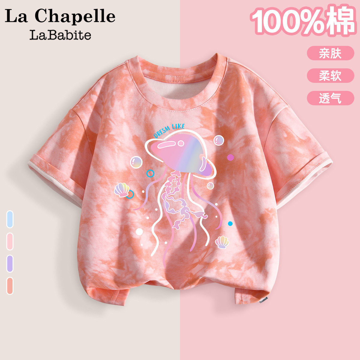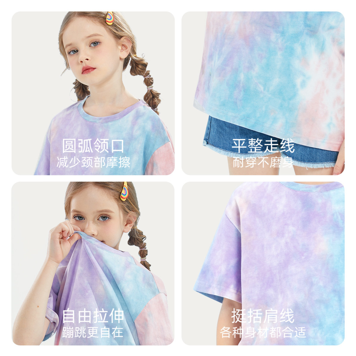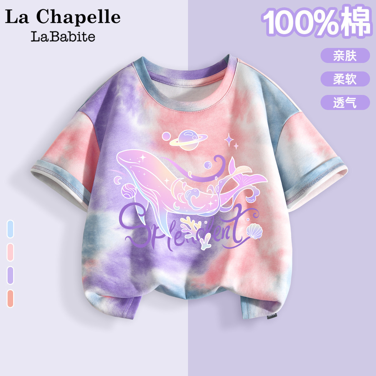 📚 拉夏贝尔女童扎染短袖t恤纯棉2026新款洋气彩虹衣服儿童夏装上衣