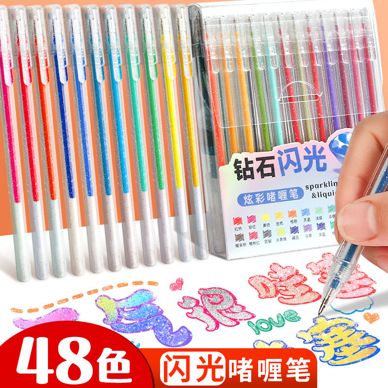 📚 彩色闪光啫喱笔发光亮晶晶荧光笔流沙手帐笔珠光标记儿童莹光做笔记闪亮金属轮廓做手账专用闪粉水彩笔萤光笔