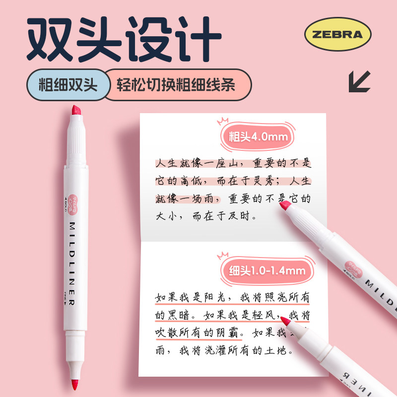 📚 日本ZEBRA斑马淡色双头荧光笔WKT7学生重点记号笔彩色标记萤光笔