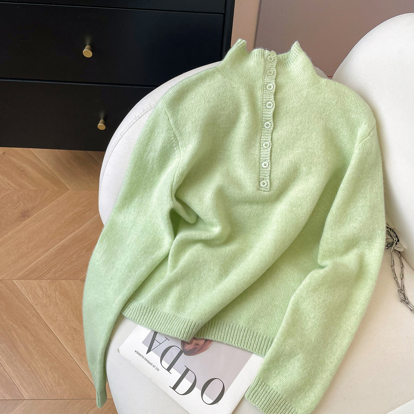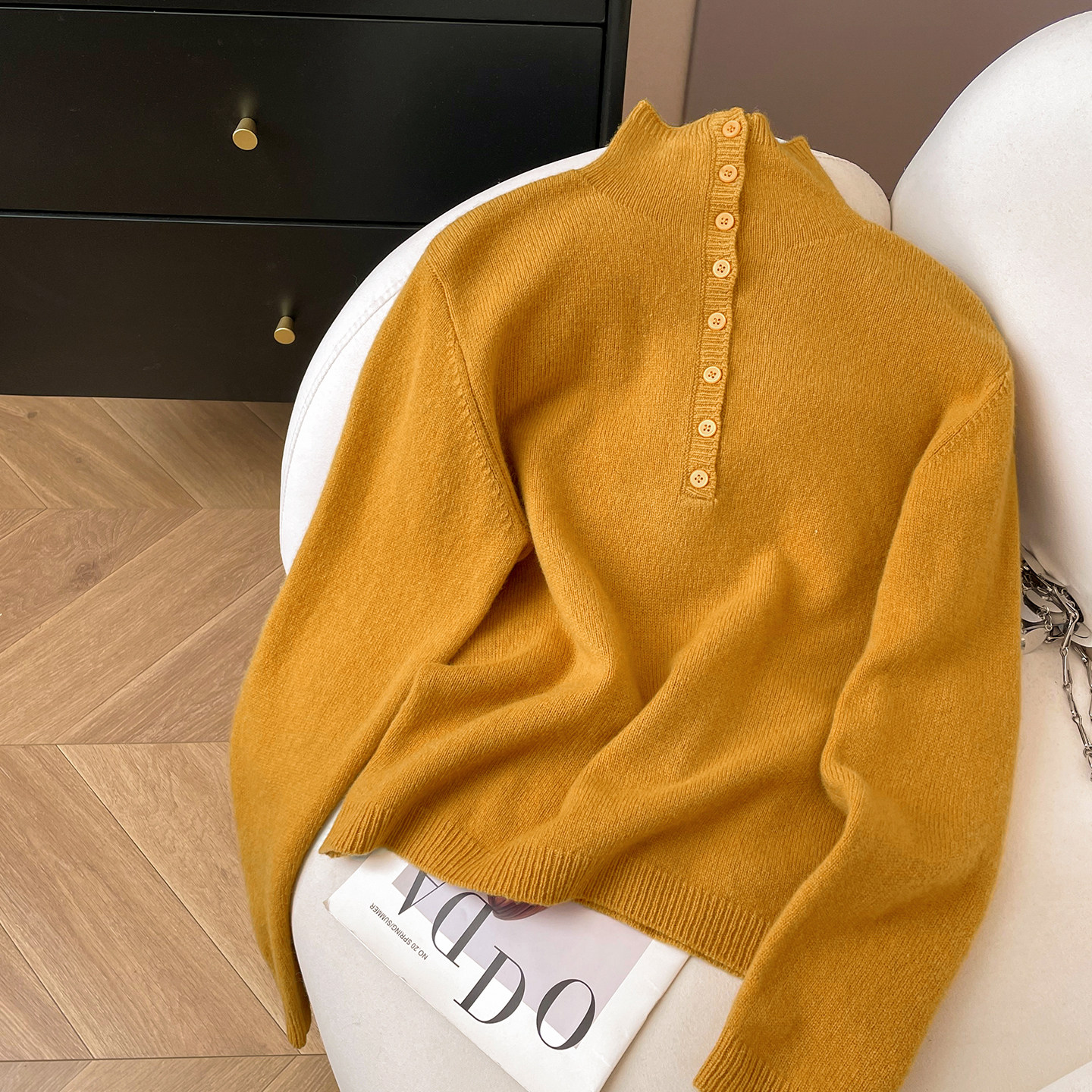 📚 小C家 排扣半高领毛衣女冬季2025新款套头羊毛衫内搭打底针织上衣