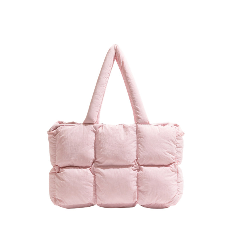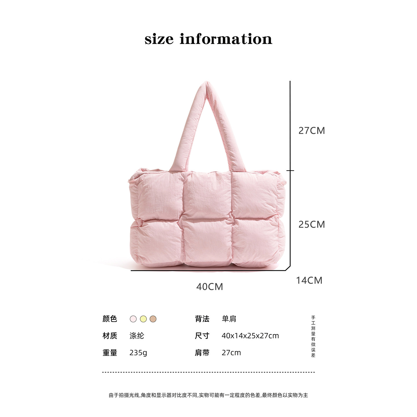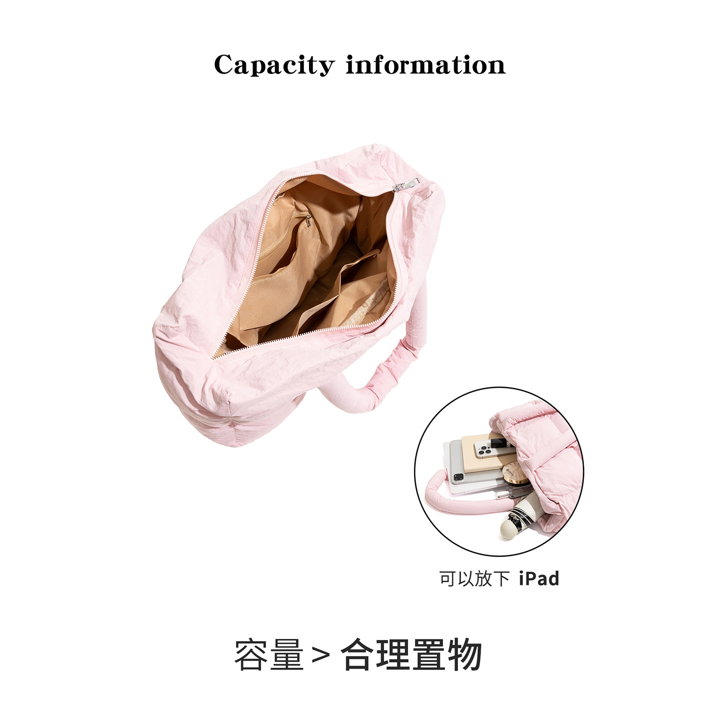 📚 格调studio秋季多巴胺粉色羽绒包包棉服设计感手提包大容量单肩包