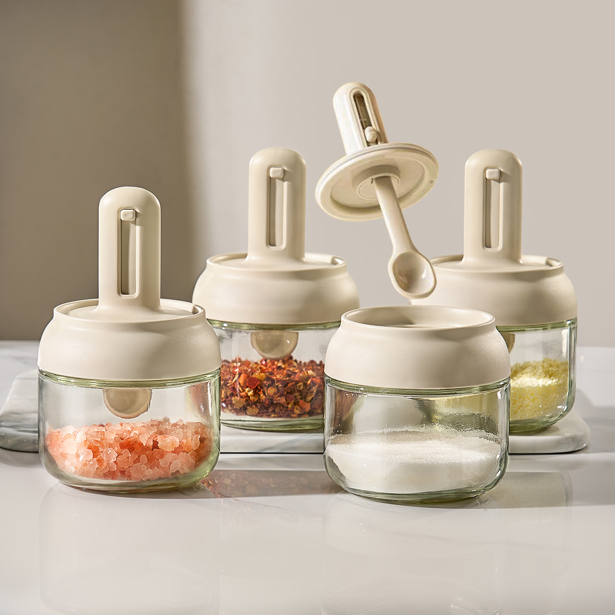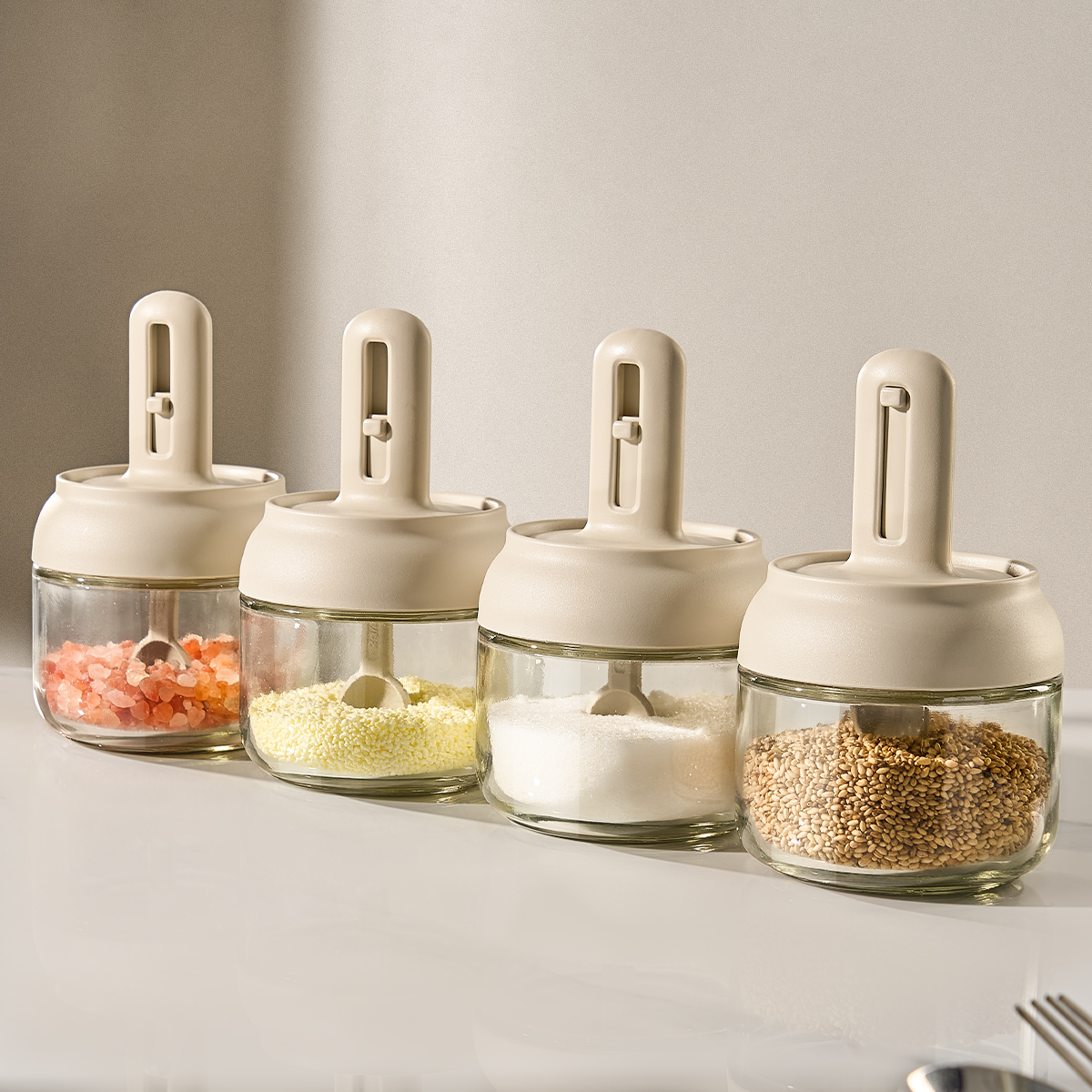 📚 伸缩调料罐勺盖一体盐罐厨房调味瓶罐家用调料盒分装小瓶套装组合