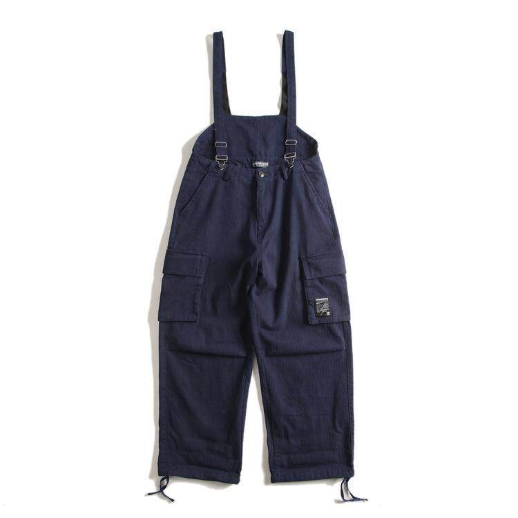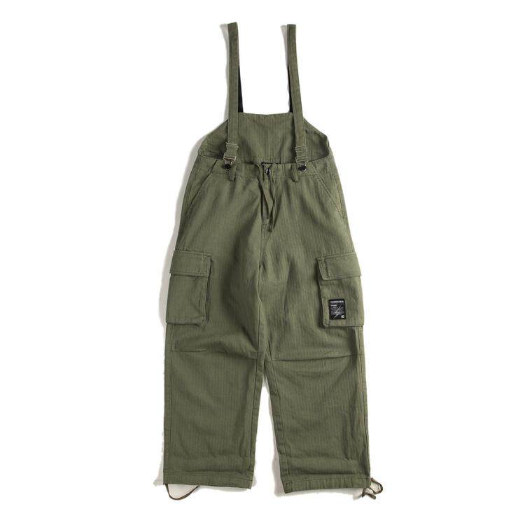 📚 美式背带工装裤男复古宽松多口袋高腰牛仔长裤ins潮街头休闲裤子