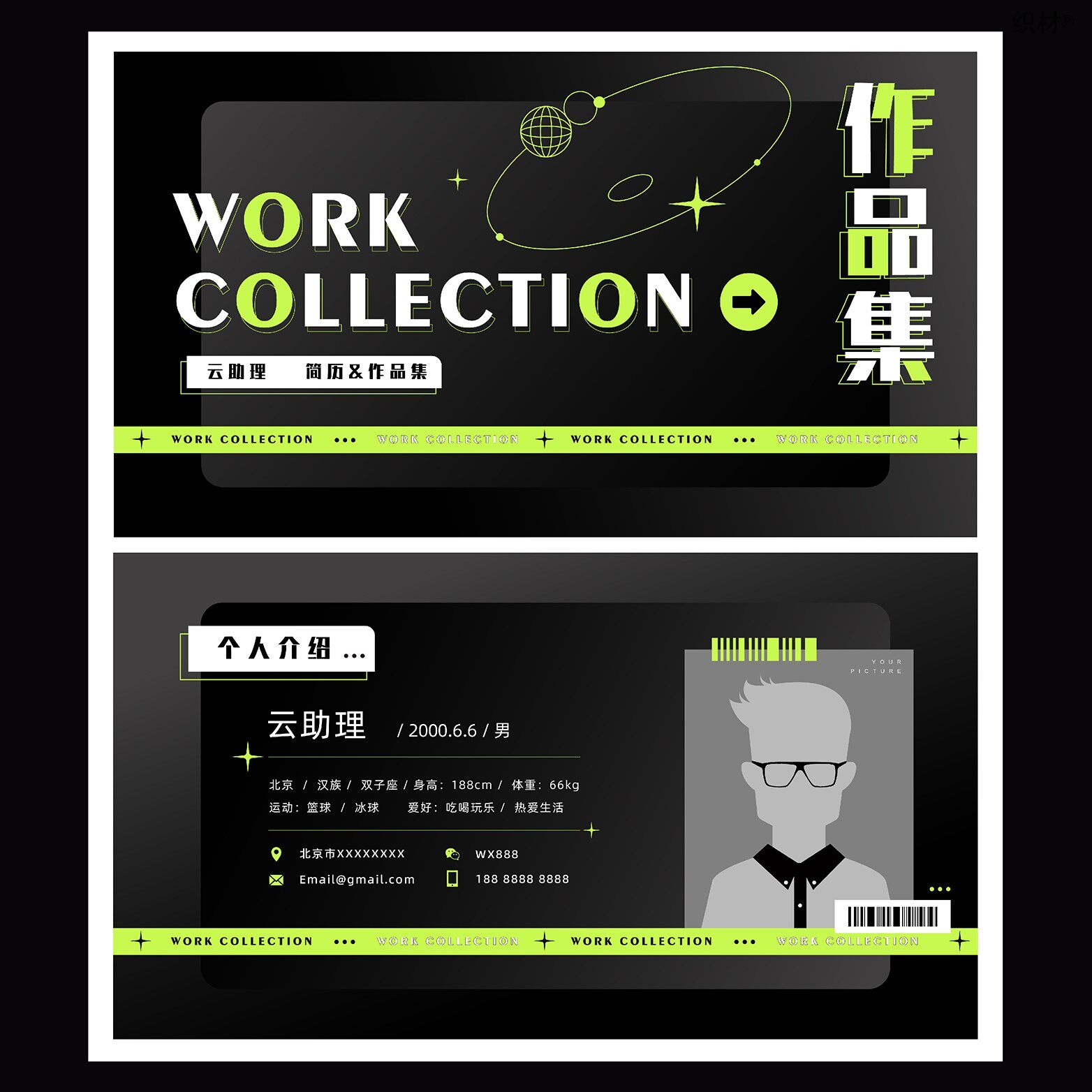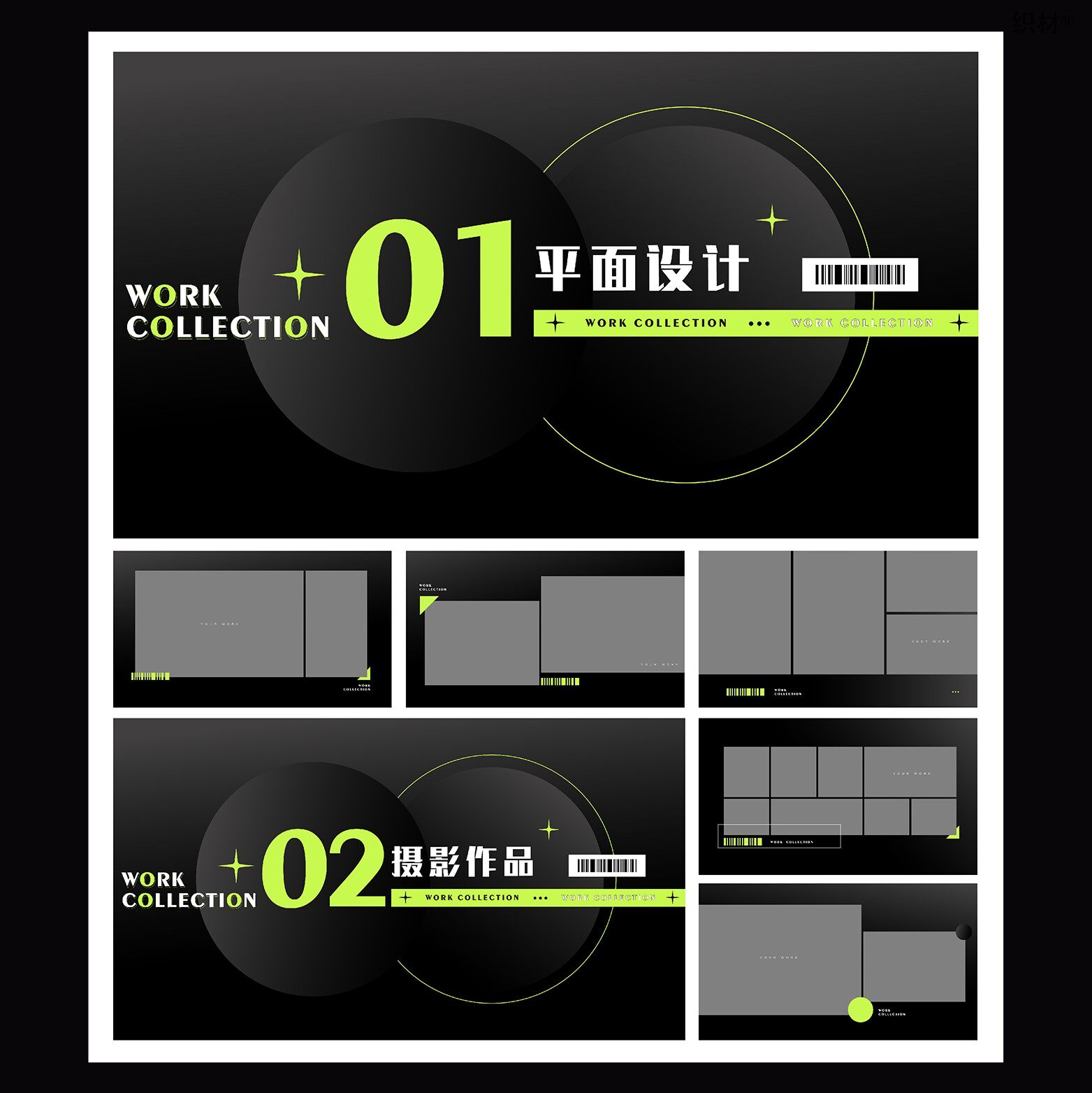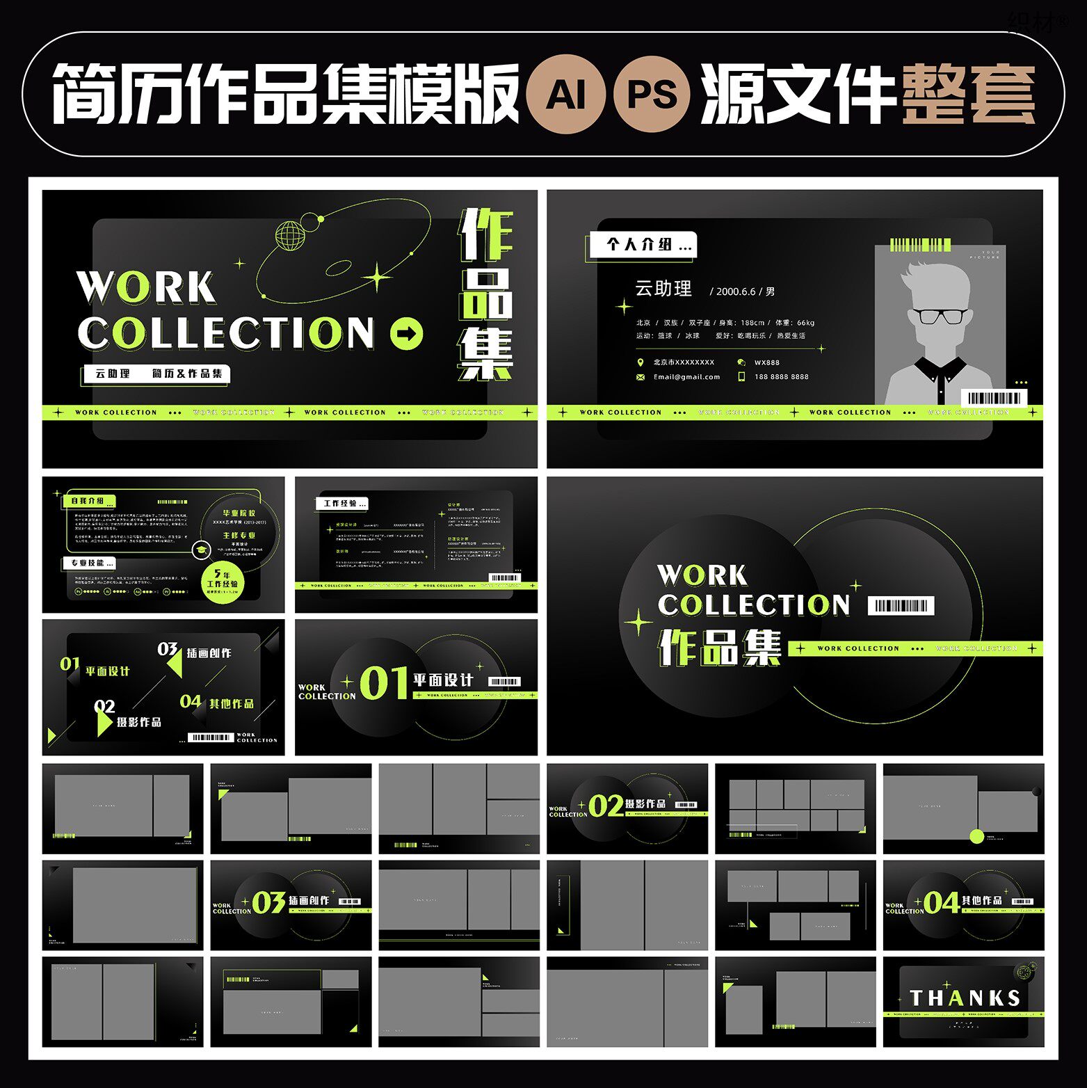 📚 酸性创意网红潮流大厂设计师简历模版作品集排版AI可编辑PS源文件