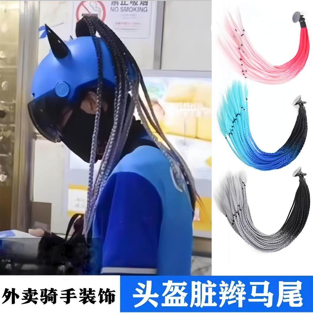📚 头盔装饰品外卖骑手电动车帽配饰个性风脏辫机车摩托车马尾辫