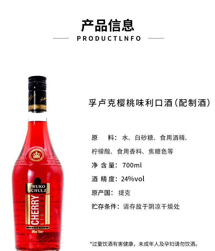 📚 孚卢克 樱桃味力娇酒配制酒利口酒 调酒鸡尾酒基酒进口洋酒行货