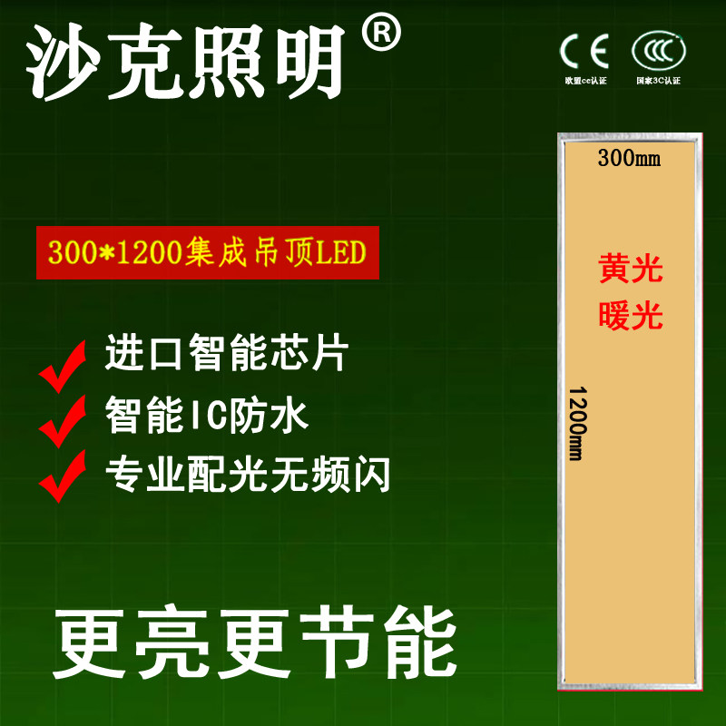📚 300*1200集成吊顶LED平板灯3000K黄光铝扣板石膏板300x1200暖光色