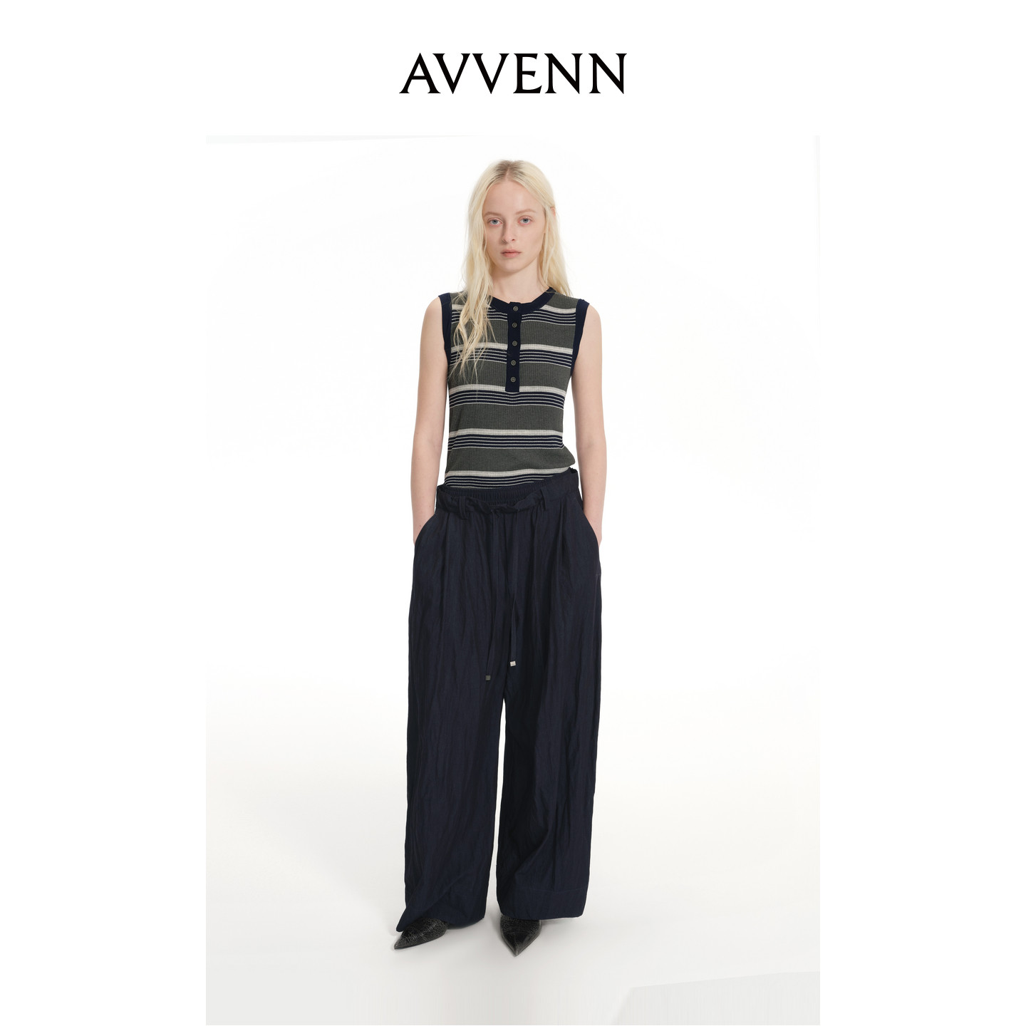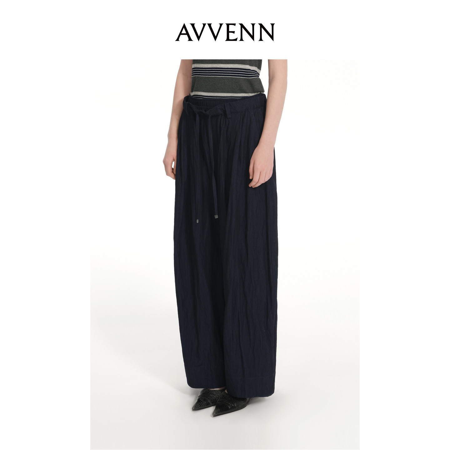 📚 AVVENN双层腰带弧形分割水洗松弛慵懒气球裤 AK31301715