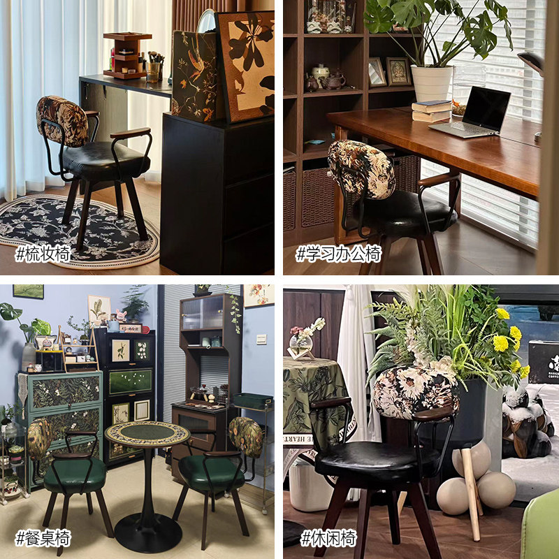 📚 家用电脑椅舒适办公椅久坐休闲椅卧室旋转座椅实木书桌椅靠背椅子