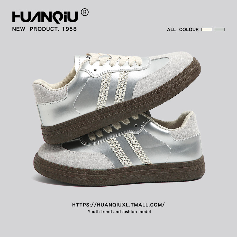 📚 环球银色厚底德训鞋女2026春季新款潮流小众女鞋休闲时尚百搭板鞋