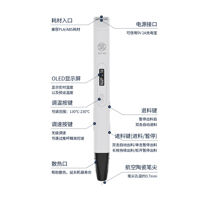📚 ZOYAN高温3D打印笔PLA专业级学生比赛培训立体空中绘画三d儿童