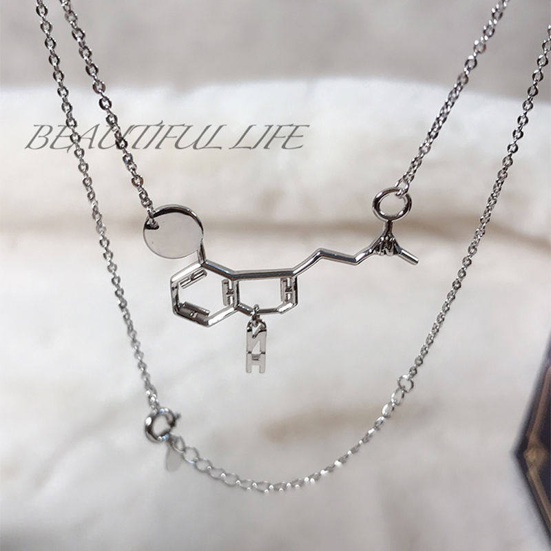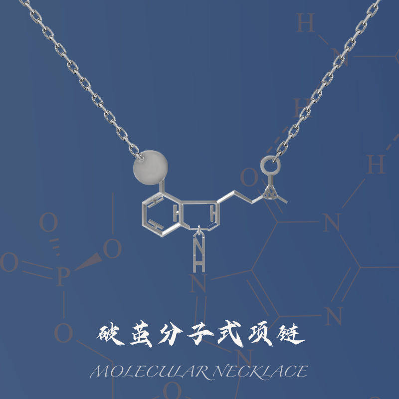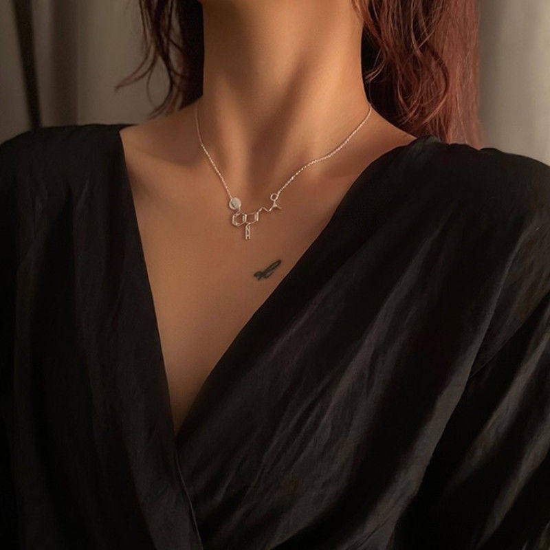📚 破茧董宁芳儿同款分子式纯银项链女锁骨颈链化学裸盖菇素情侣吊坠