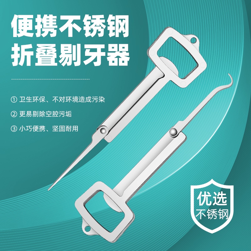 📚 304扣牙神器高级牙签不锈钢剔牙随身超细防塞牙剃牙勾针可开瓶