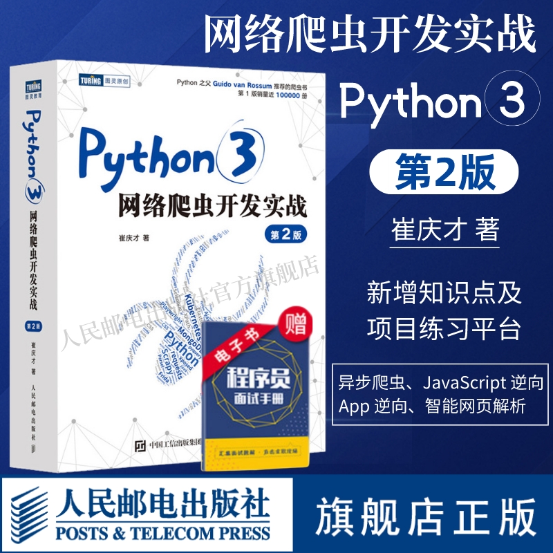 📚 Python3网络爬虫开发实战 第2二版 崔庆才网络数据采集抓取处理分析书籍教程网络爬虫开发动态网站爬取大数据教程 人邮社