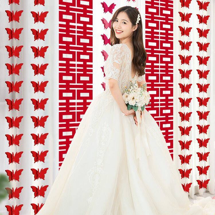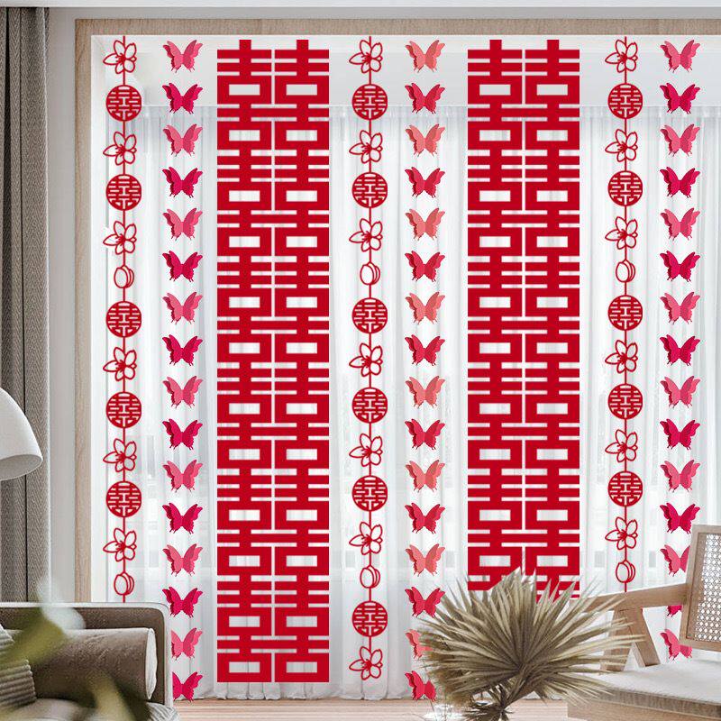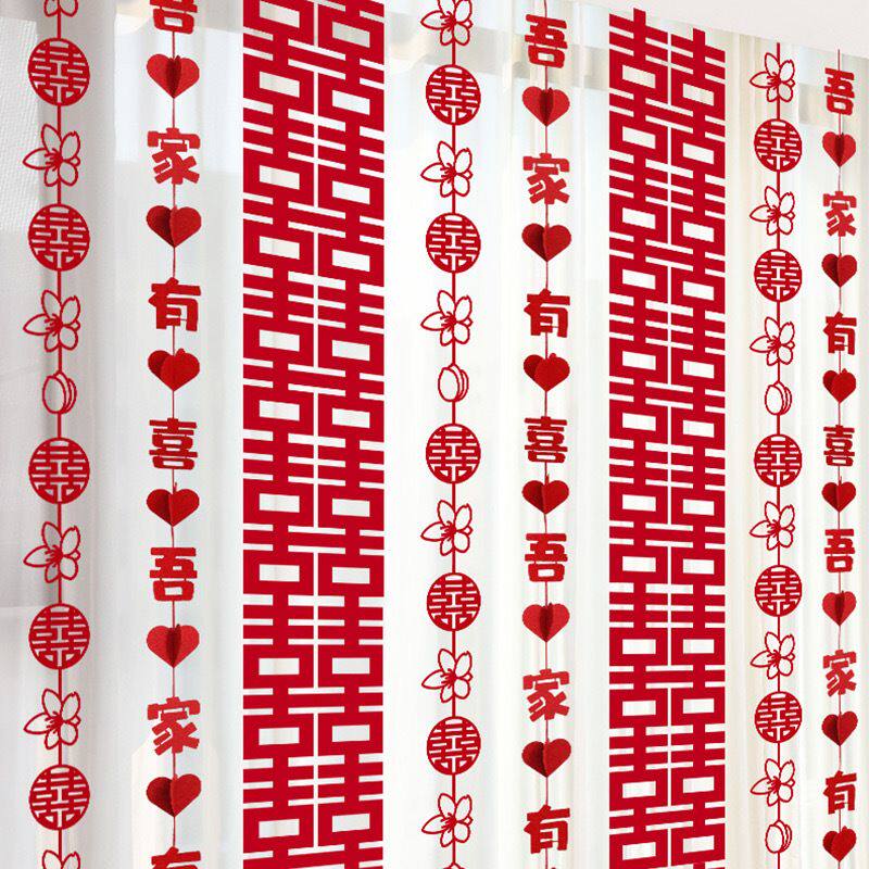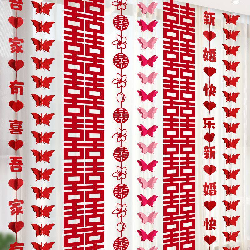 📚 婚房布置装饰窗帘套装长条喜字新房婚礼喜字女方卧室房间蝴蝶拉花