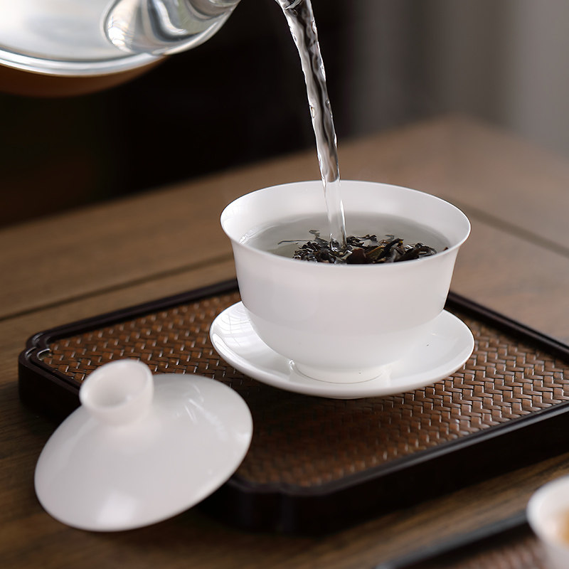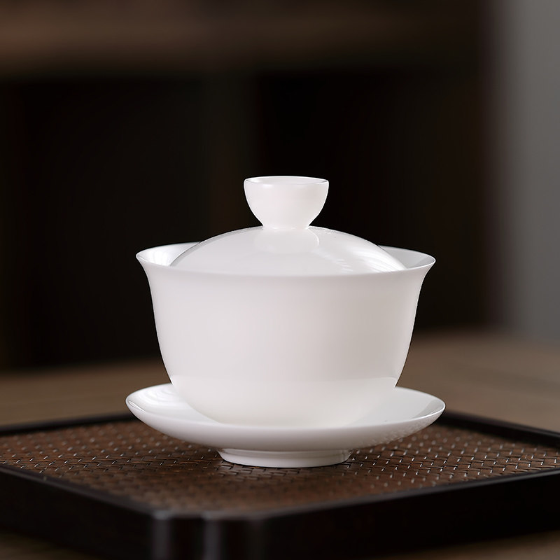 📚 骨瓷盖碗白瓷潮州功夫茶泡茶碗薄胎茶具家用喝茶通用80ml小茶碗