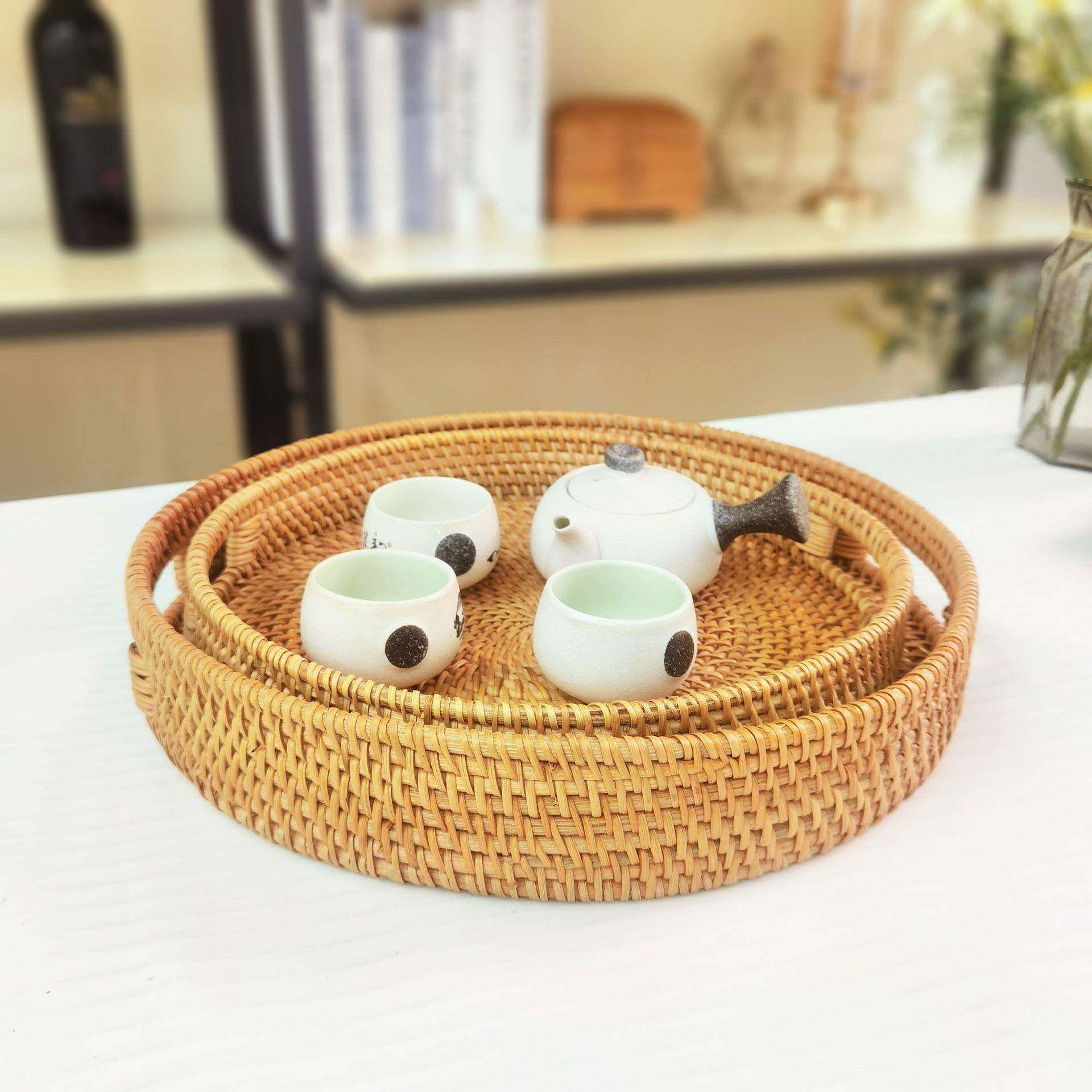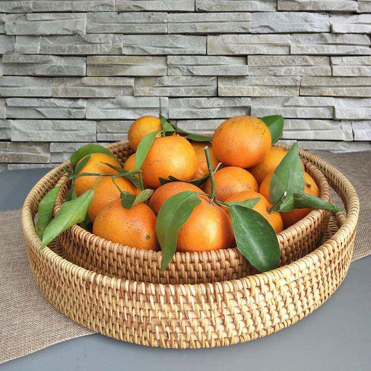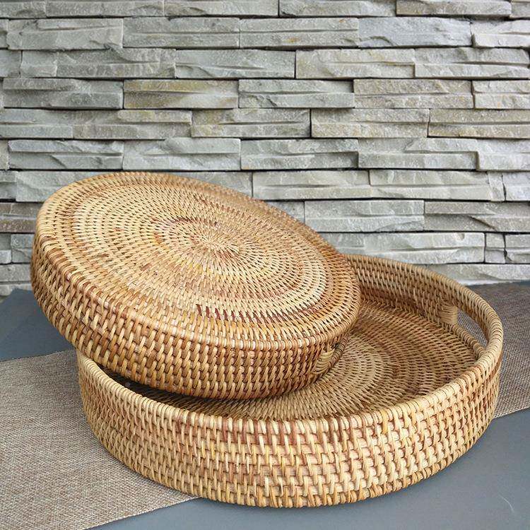 📚 华飞果藤面包头筐糖果茶具点水心盘手工编062收馒纳托盘