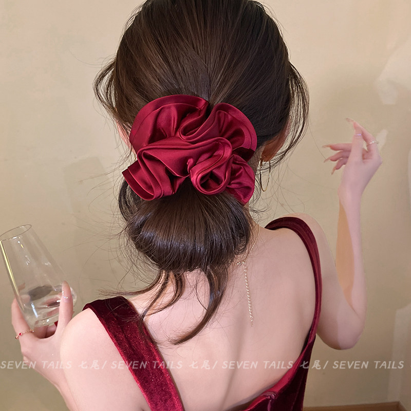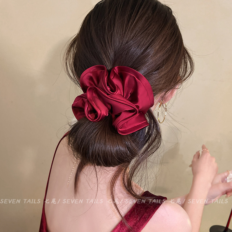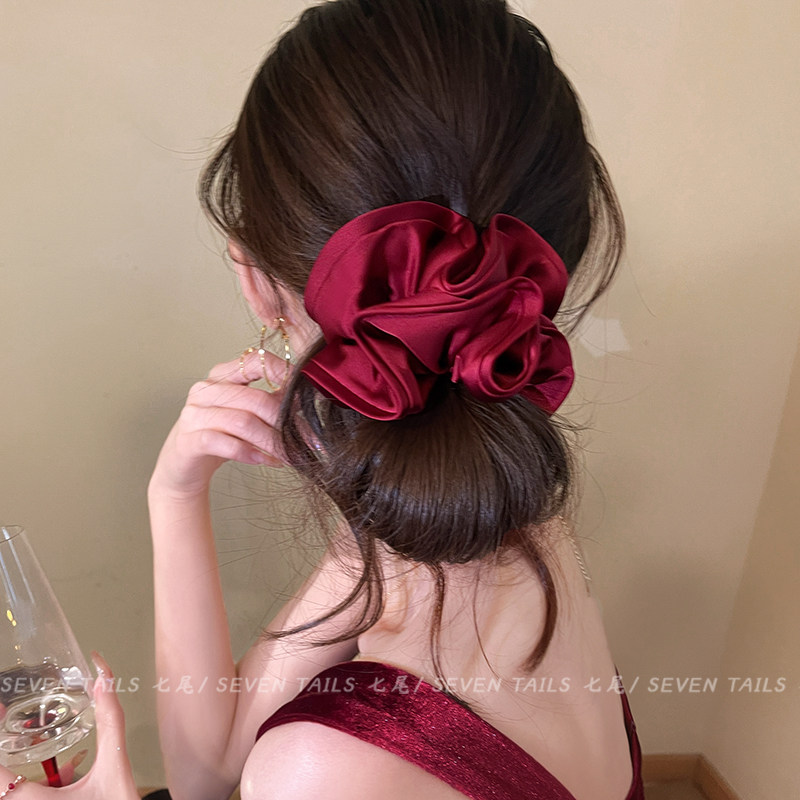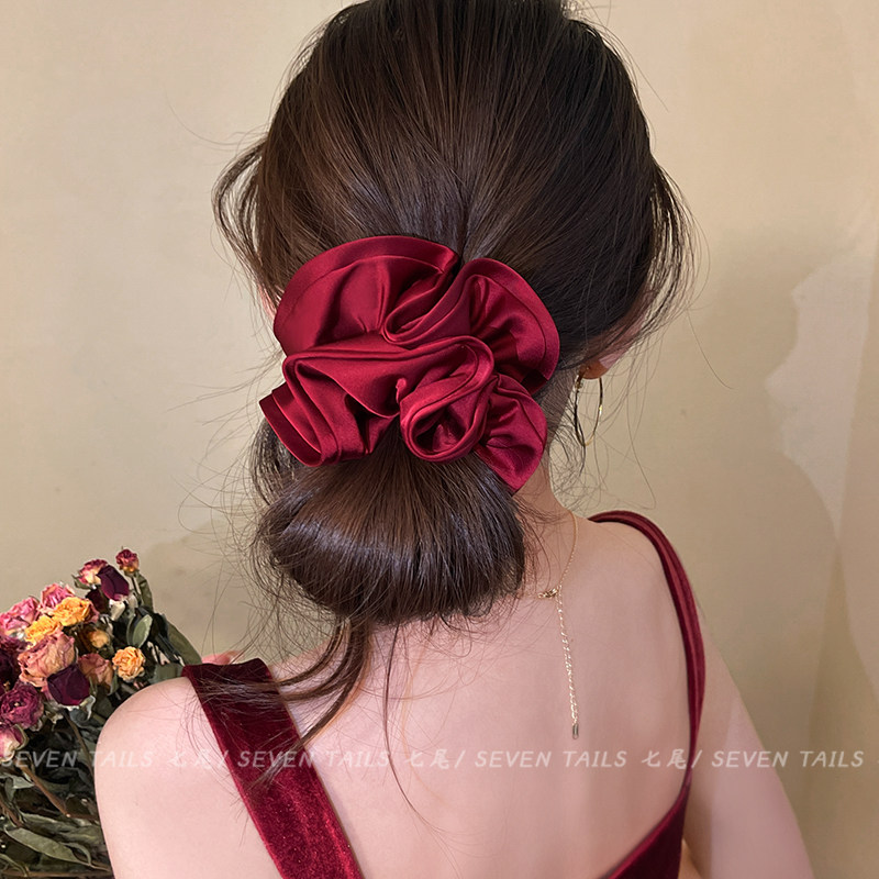 📚 安可拉红花苞缎面大肠发圈女高级感丸子头绳2026新款扎头发绳发饰
