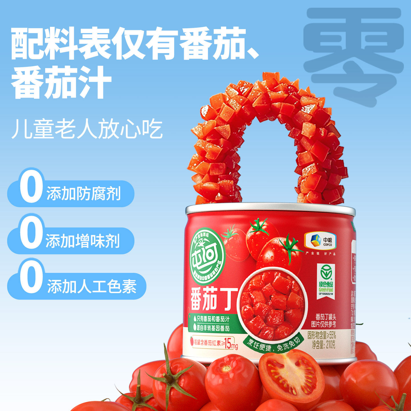 📚 中粮屯河新疆内蒙切块番茄丁绿色健康西红柿块210g罐头健康