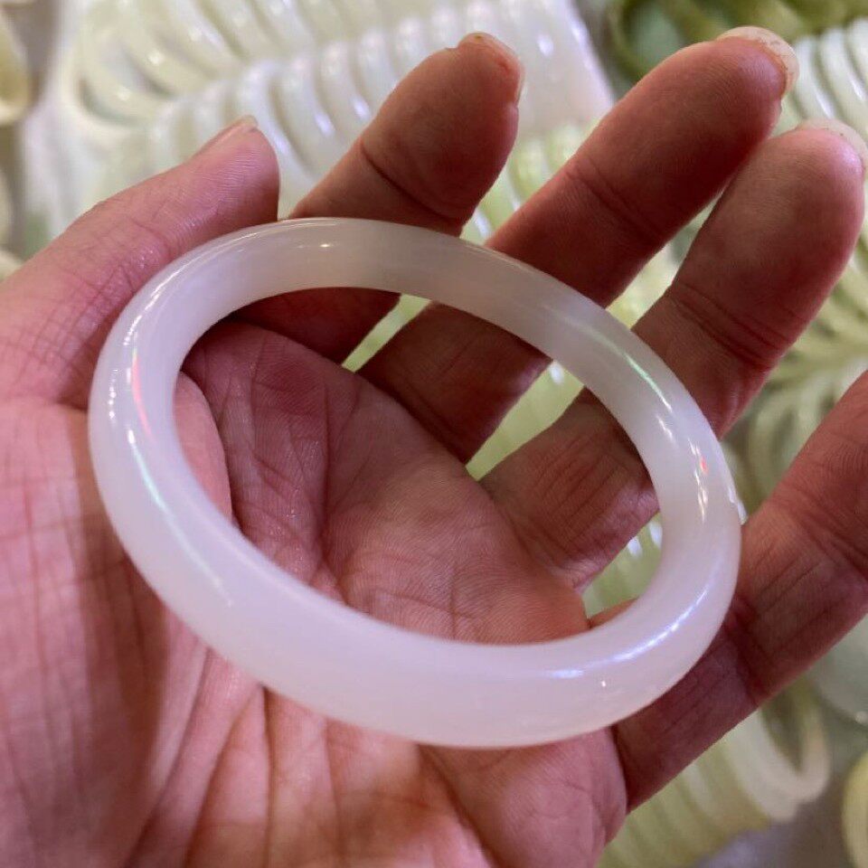 📚 供货玉石手镯阿富汗白玉细圆条白玉手镯美人镯女款手镯