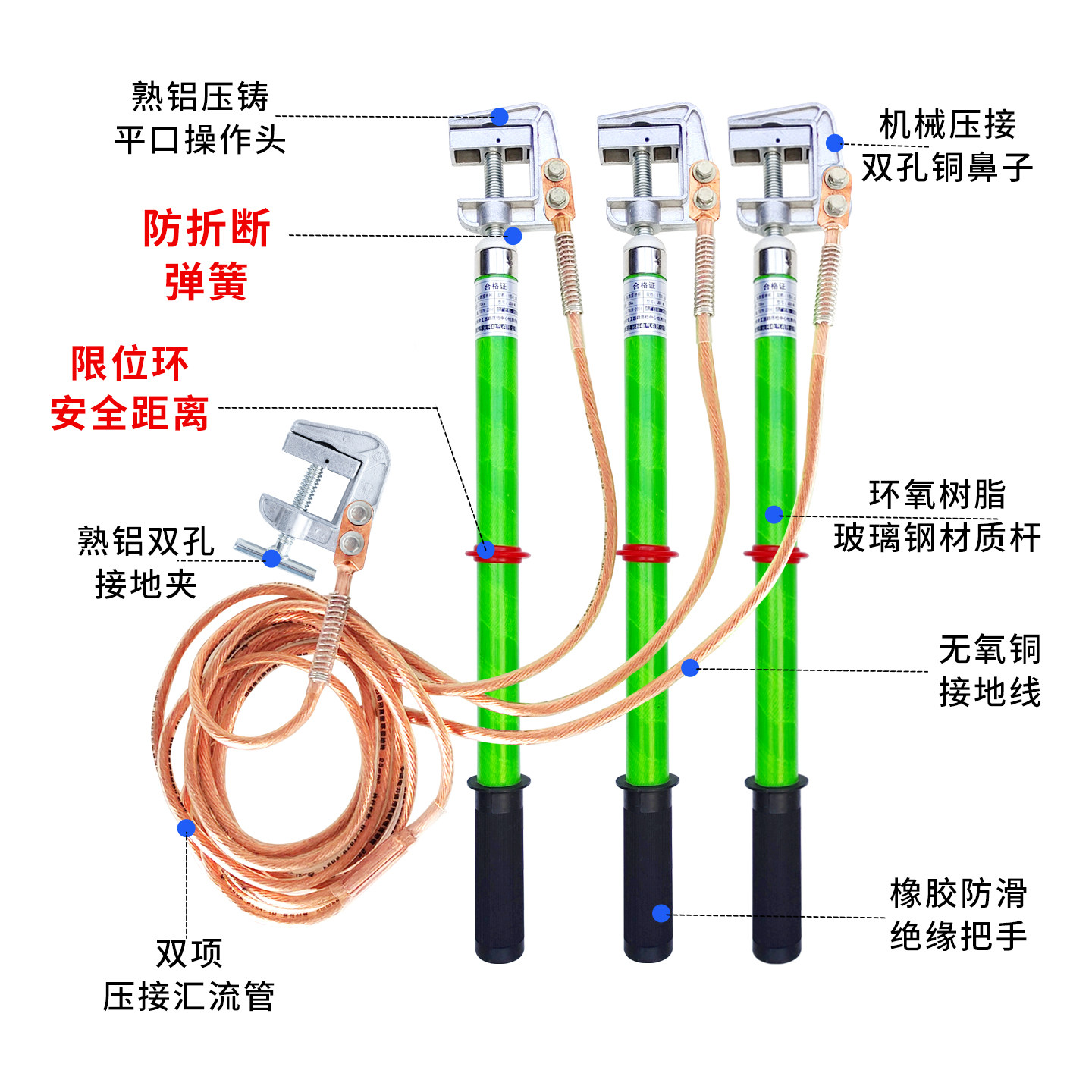 📚 高压接地线10KV电站厂放电短路接地棒配电房接地线夹25方平软铜线
