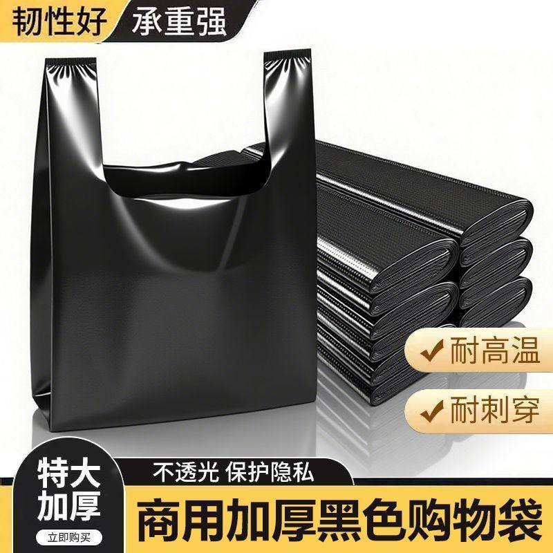 📚 筱颖加厚黑色塑料袋批发食品一次性手提打包袋保鲜背心袋子方便袋