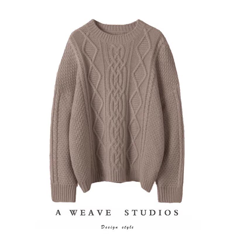 📚 美到会发光!设计感小众100%纯山羊绒毛衣女秋冬季新款加厚慵懒风