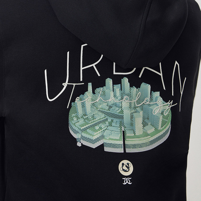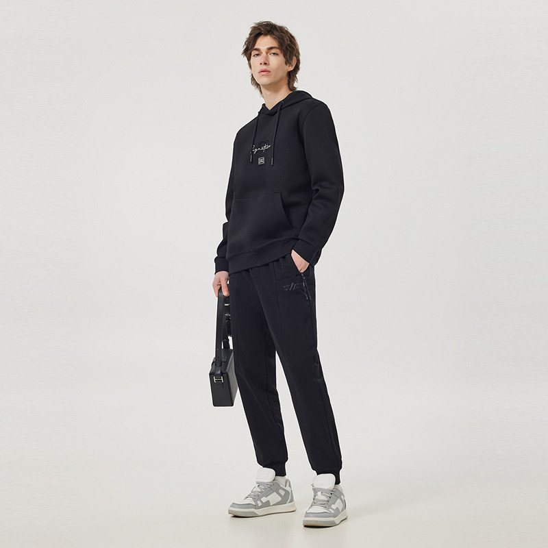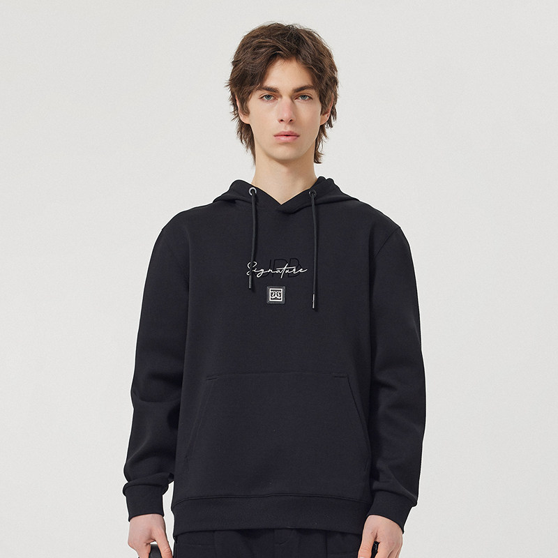 📚 【亲肤棉感】卡宾刺绣印花连帽卫衣男装秋季套头休闲黑色长袖上衣