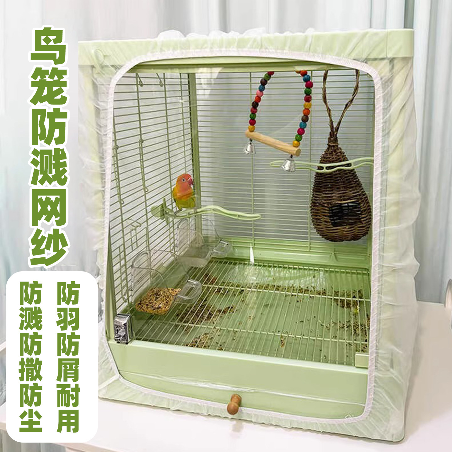 📚 鸟笼蚊帐达洋鹦鹉鸟笼罩防溅洒网透气防蚊帐鸟笼子防溅网纱罩5001