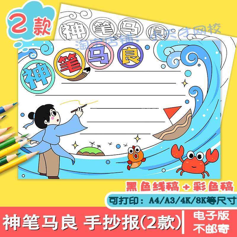 📚 神笔马良读书手抄报模板电子版小学生阅读好书推荐卡观影小报