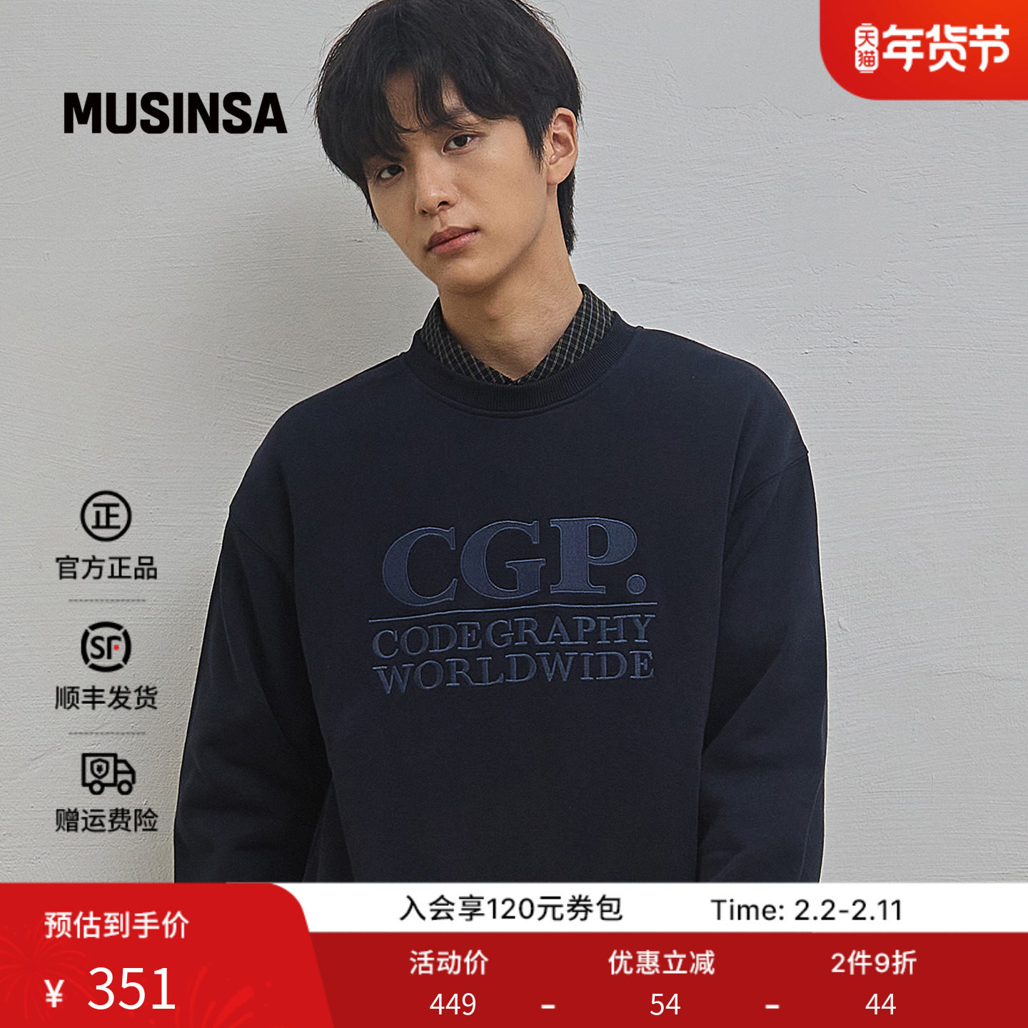 📚 Codegraphy韩国男士25冬季简约圆领印花方形标志卫衣MUSINSA