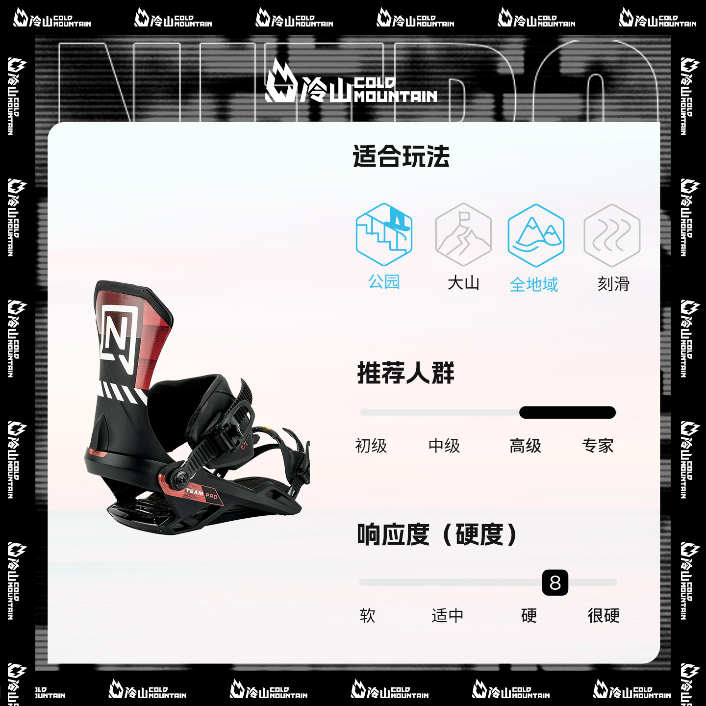 📚 冷山雪具NITRO单板固定器TEAM PRO全能滑行刻滑跳台固定器男款