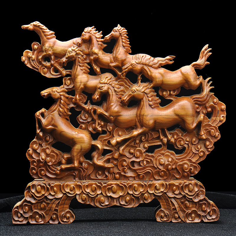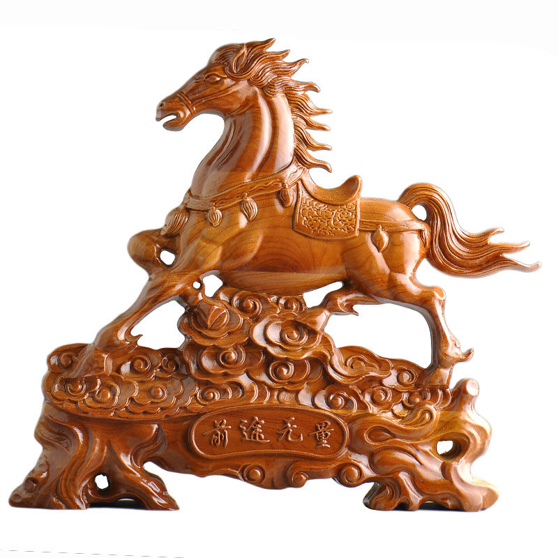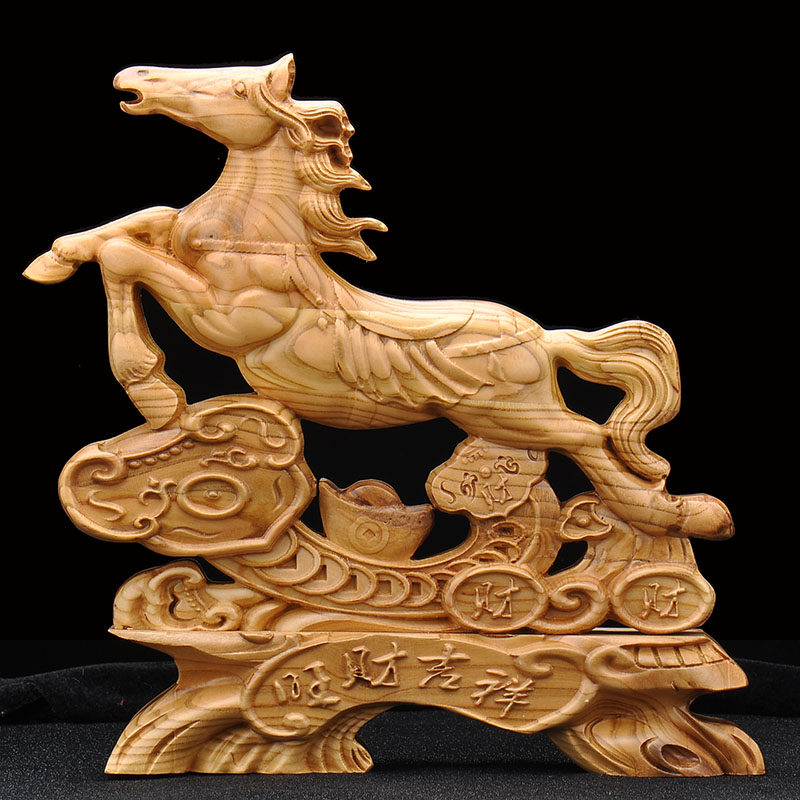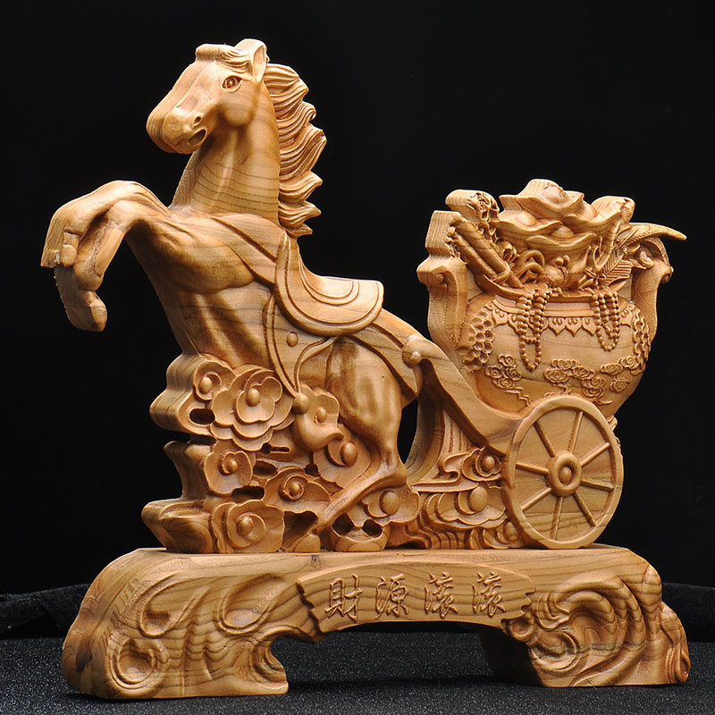 📚 桃木马拉元宝聚宝盆木马摆件生肖马实木雕刻木质木雕马装饰工艺品