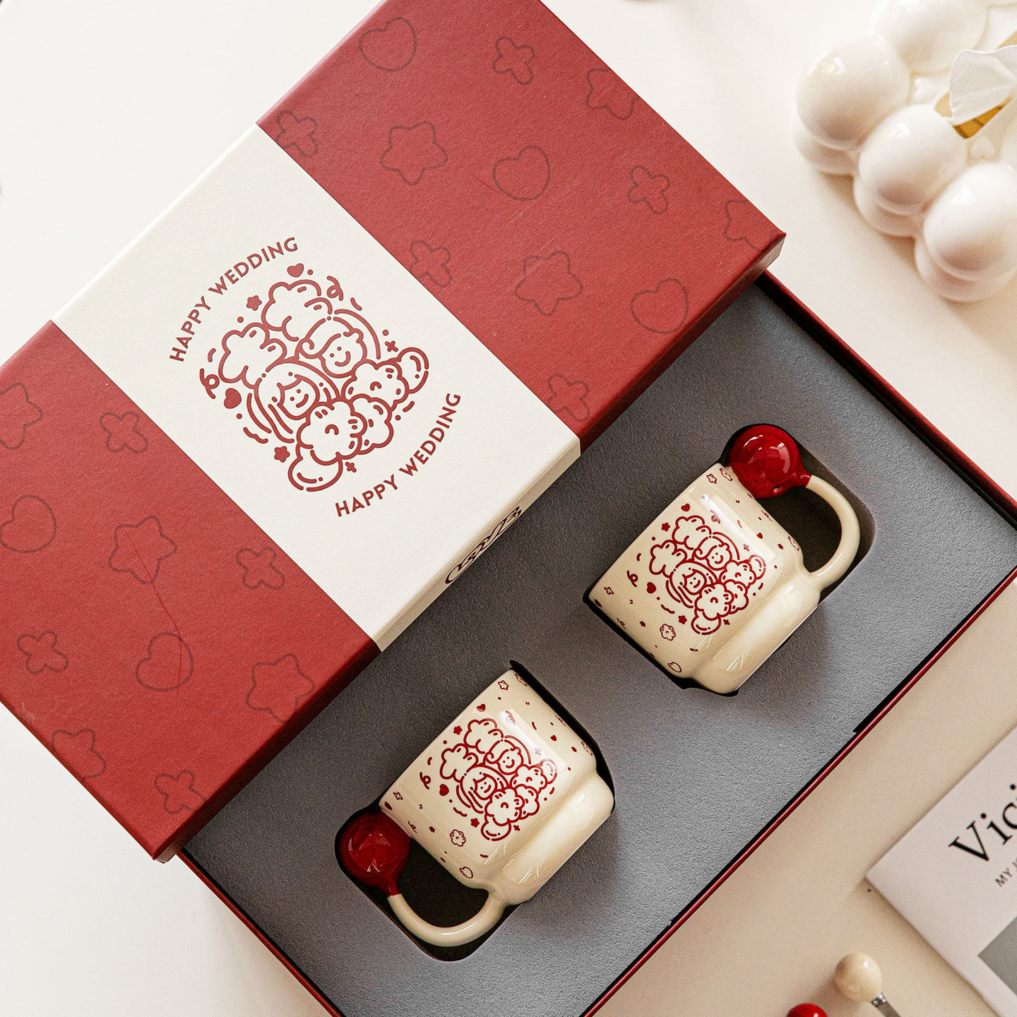 📚 结婚新婚对杯礼物送闺蜜新人新娘情侣陶瓷水杯乔迁之喜礼盒喜糖盘