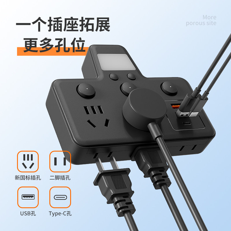 📚 多插位纯铜插座转换器多用黑色万能转换面板带usb扦座不带线插排