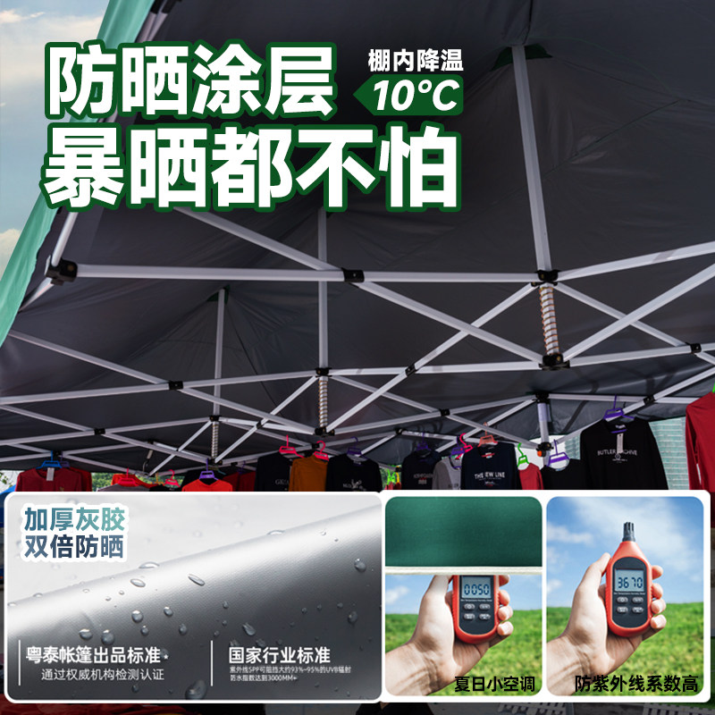 👀首先,它的四角设计非常坚固,能够抵御风雨的侵袭。无论是雨天还是大风天气,都能保持篷布的稳定性和安全性。而且,它的折叠设计非常方便,可以轻松装进车后备箱或者帐篷里,非常适合户外摆摊使用。