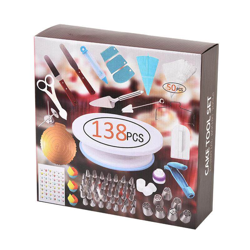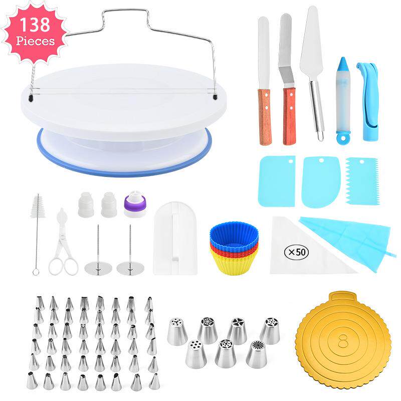 📚 性138件套蛋糕花油转台套装一次裱花袋裱花嘴奶抹裱刀刮GXHBZPTZ