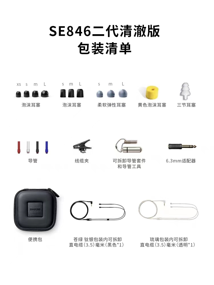 📚 Shure/舒尔 SE846二代清澈版 四动铁单元入耳式HiFi耳机 IE600
