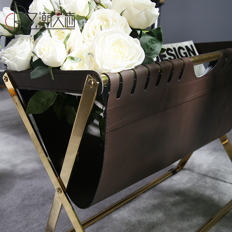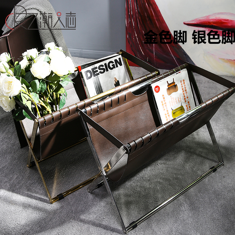 📚 北欧不锈钢皮革书报架落地储物架子家用杂志收纳架报纸报刊置物架