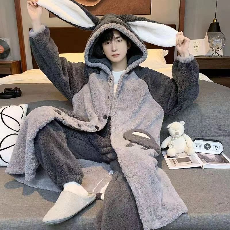📚 男士睡衣秋冬季珊瑚绒加绒加厚冬天青少年睡袍男法兰绒浴袍家居服